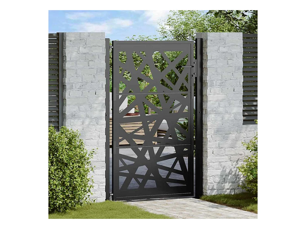 Puerta de jardín negra 105x155 cm diseño de líneas en acero