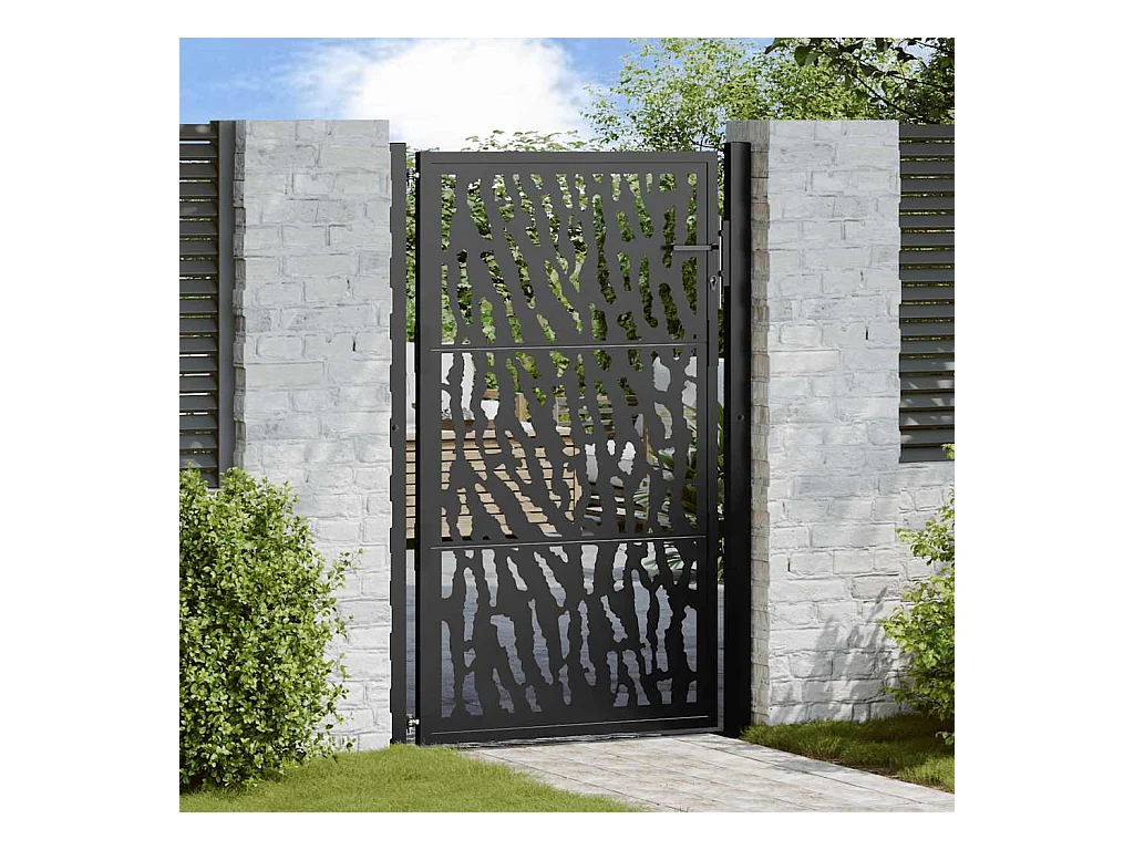 Puerta de jardín negra 105x155 cm diseño de líneas en acero
