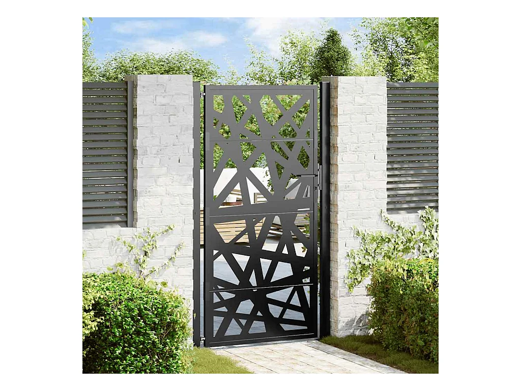 Puerta de jardín negra 105x180 cm diseño de líneas en acero