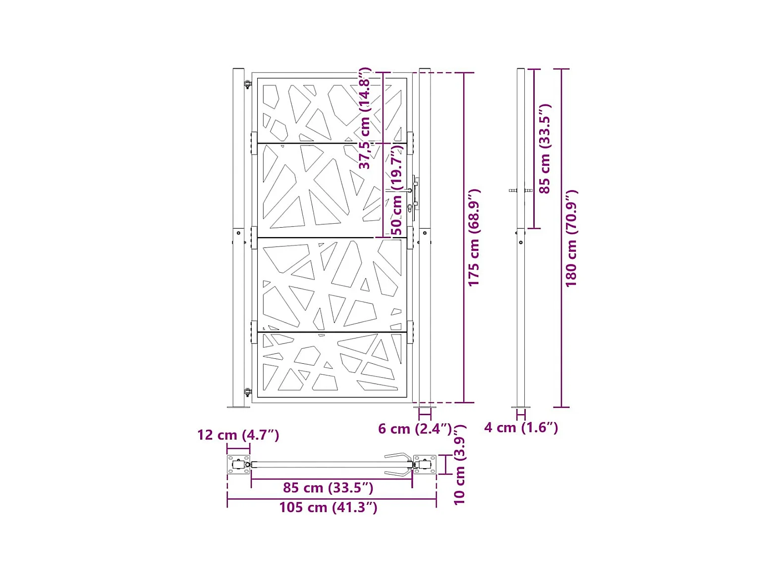 Puerta de jardín negra 105x180 cm diseño llama de acero