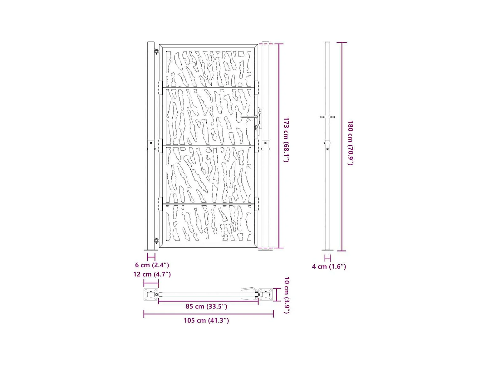 Puerta de jardín negra 105x180 cm diseño ondulado de acero