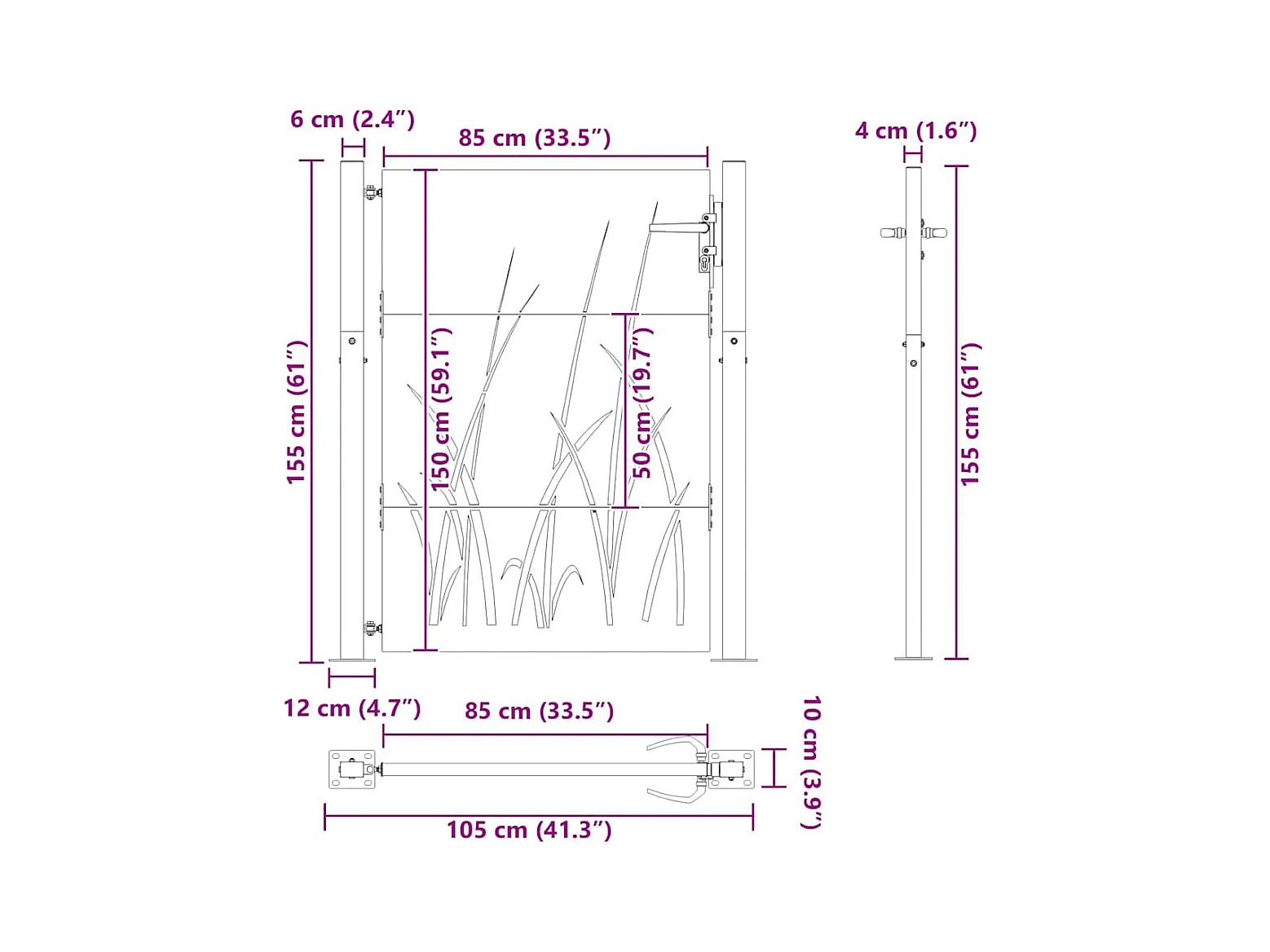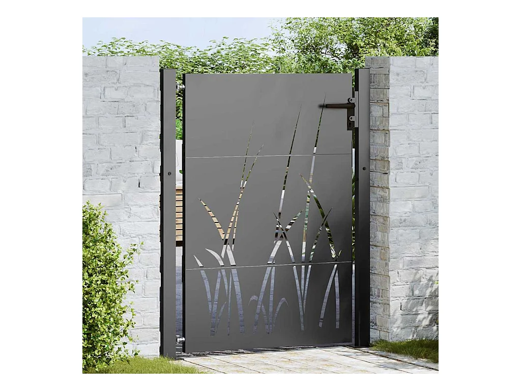 Puerta de jardín negra de 105 x 150 cm de acero con recubrimiento en polvo