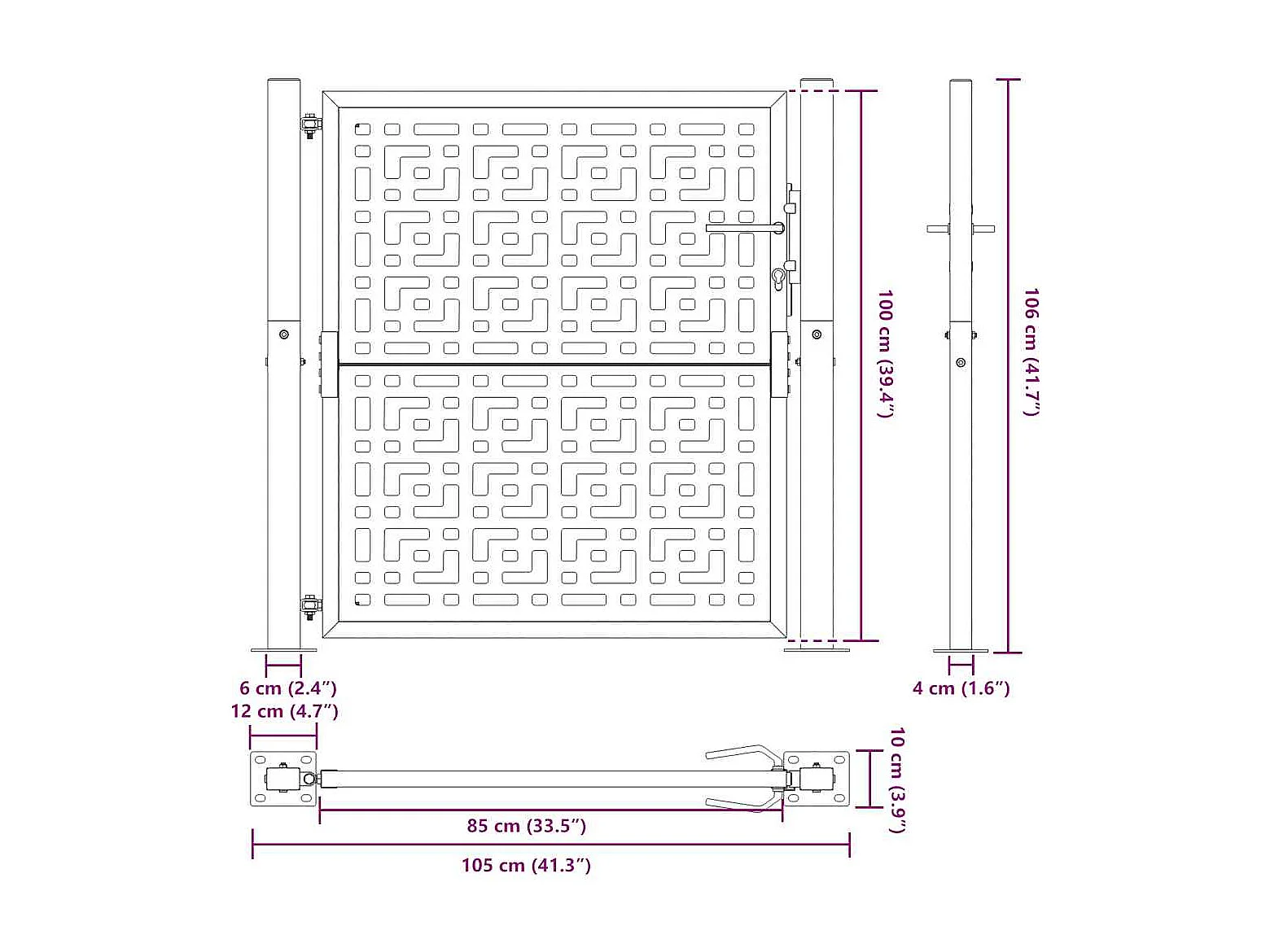 Puerta de jardín negra 105x106 cm diseño de líneas en acero