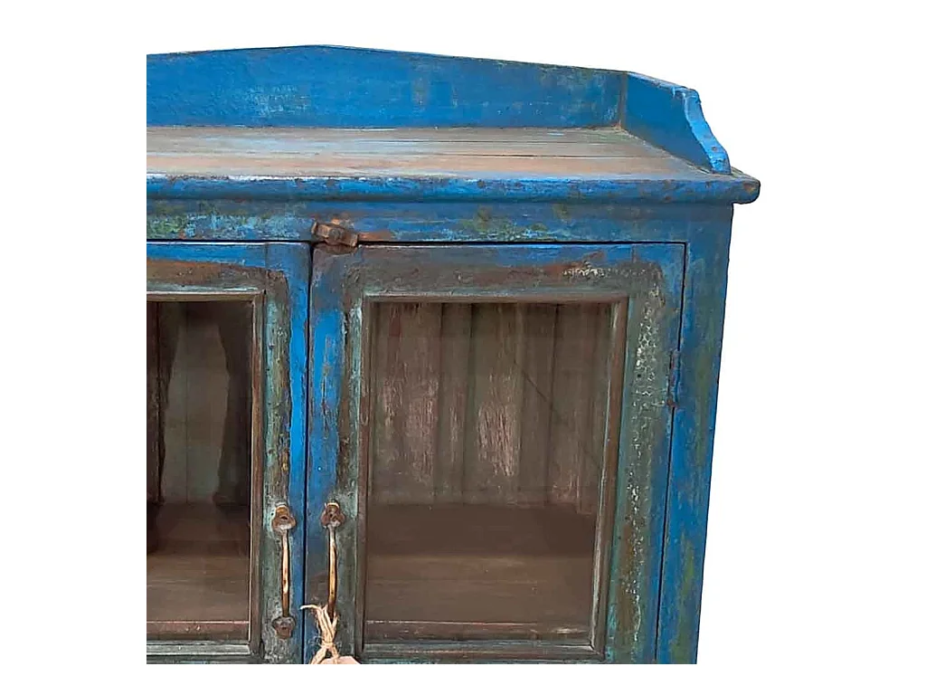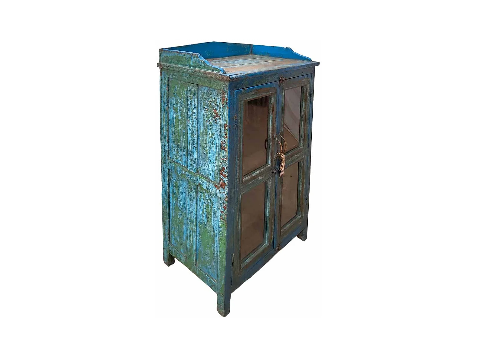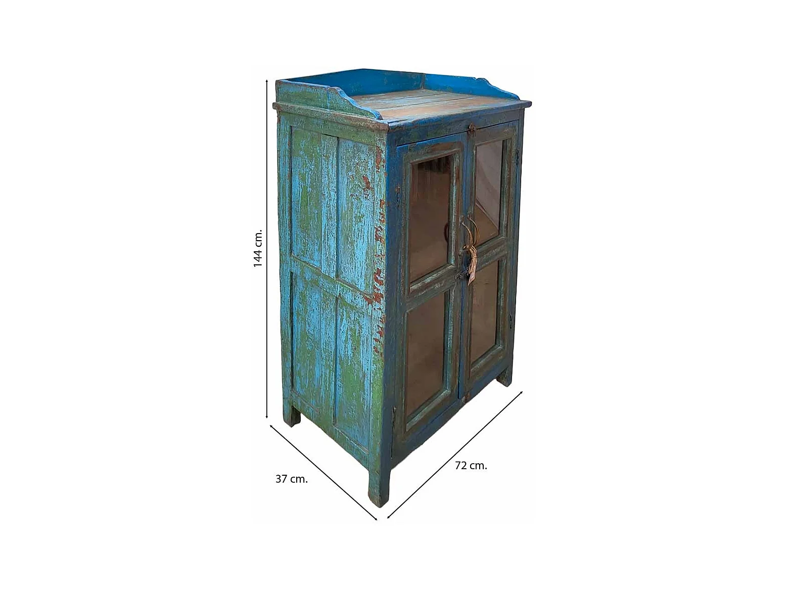 Vitrina de madera azul con acabado artesanal 98x3x175h cm
