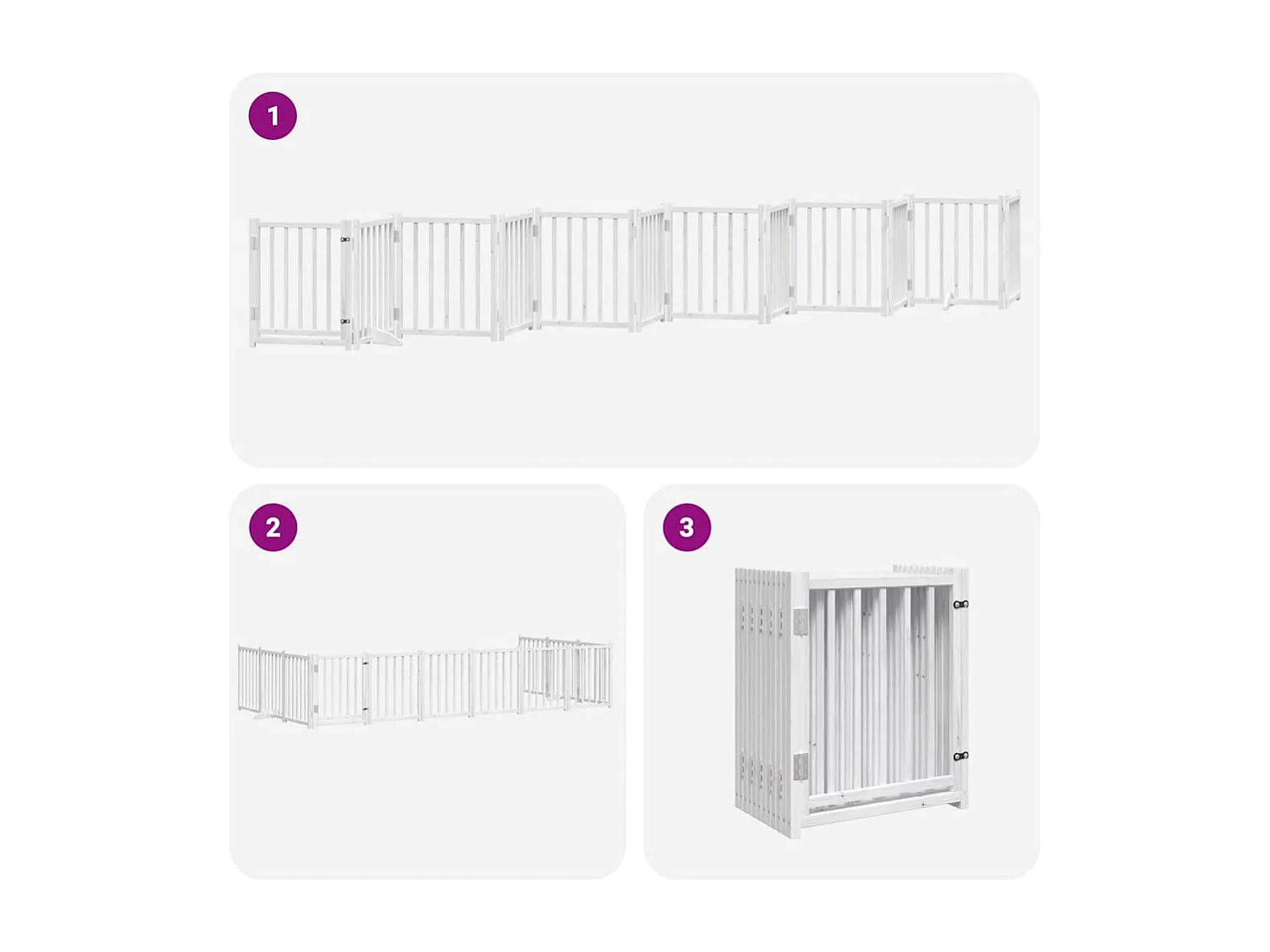 Puerta para perros plegable 3 paneles madera álamo blanca 150cm