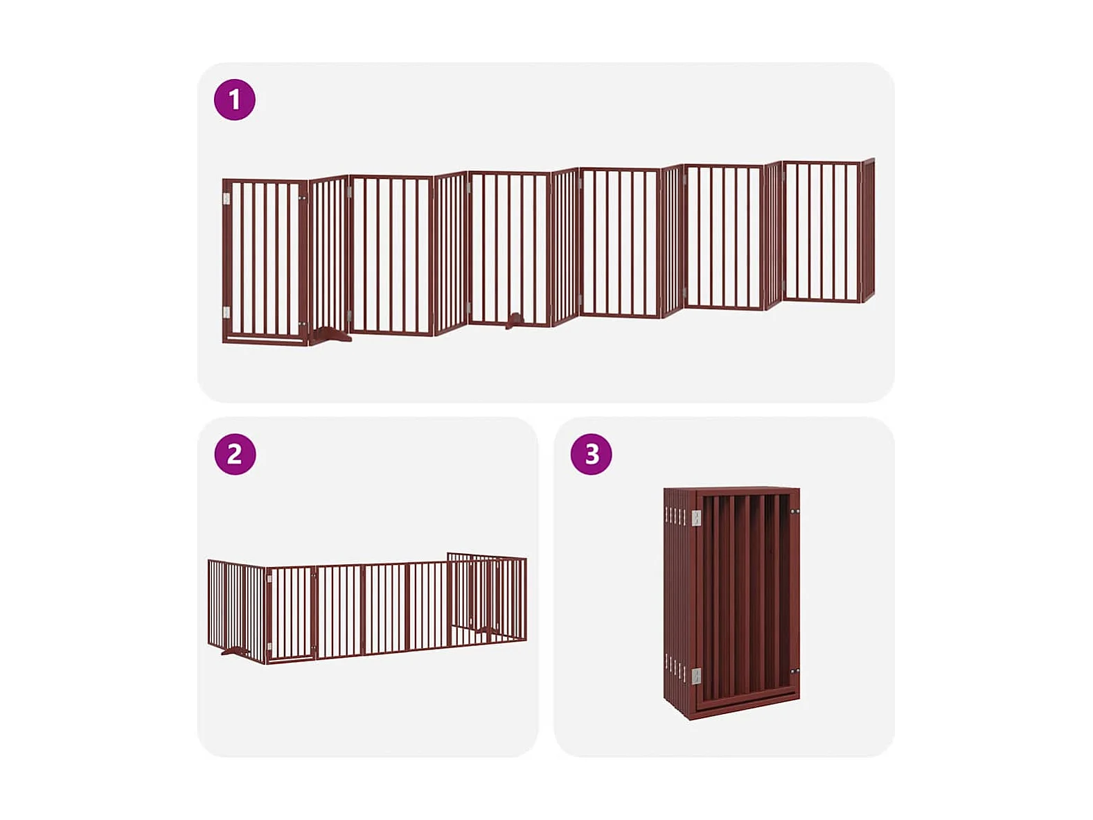 Puerta para perros plegable 3 paneles madera álamo marrón 150cm