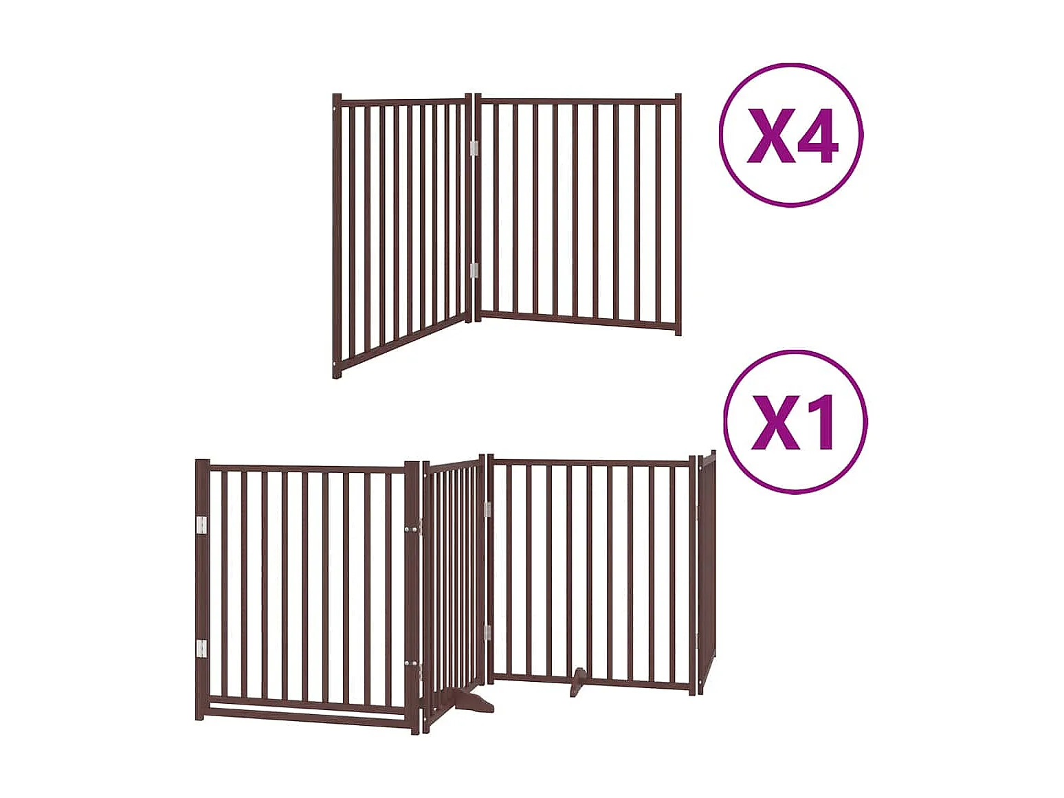 Puerta de perros plegable 4 paneles madera abeto marrón 320 cm