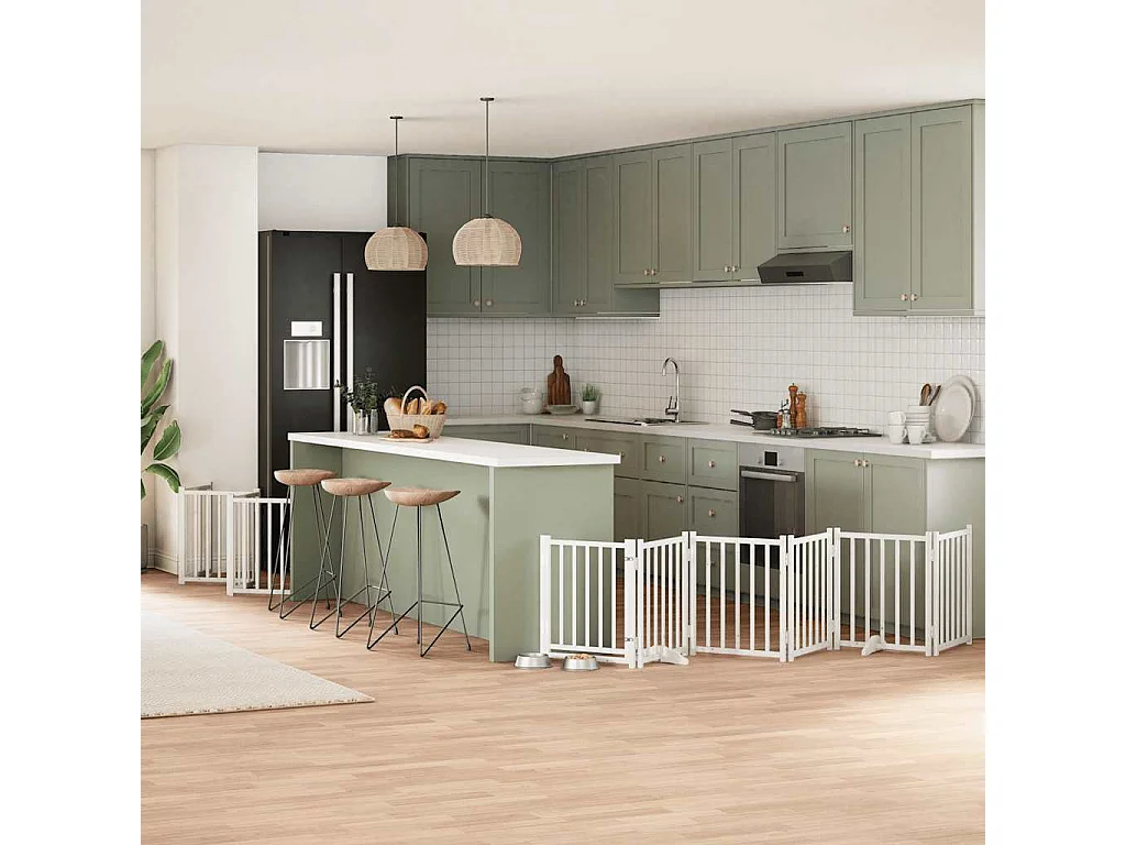 Puerta para perros plegable 3 paneles madera álamo blanca 300cm
