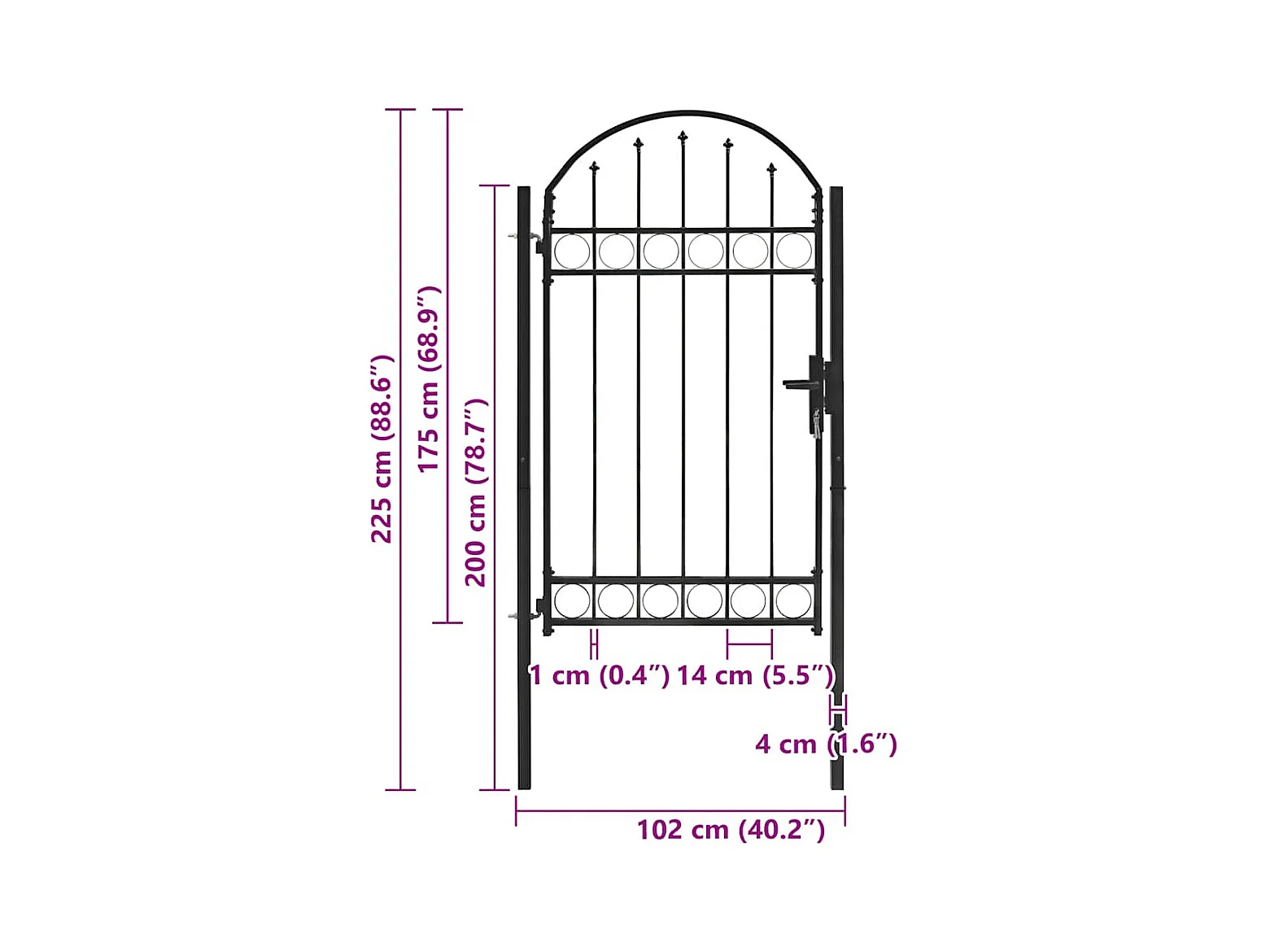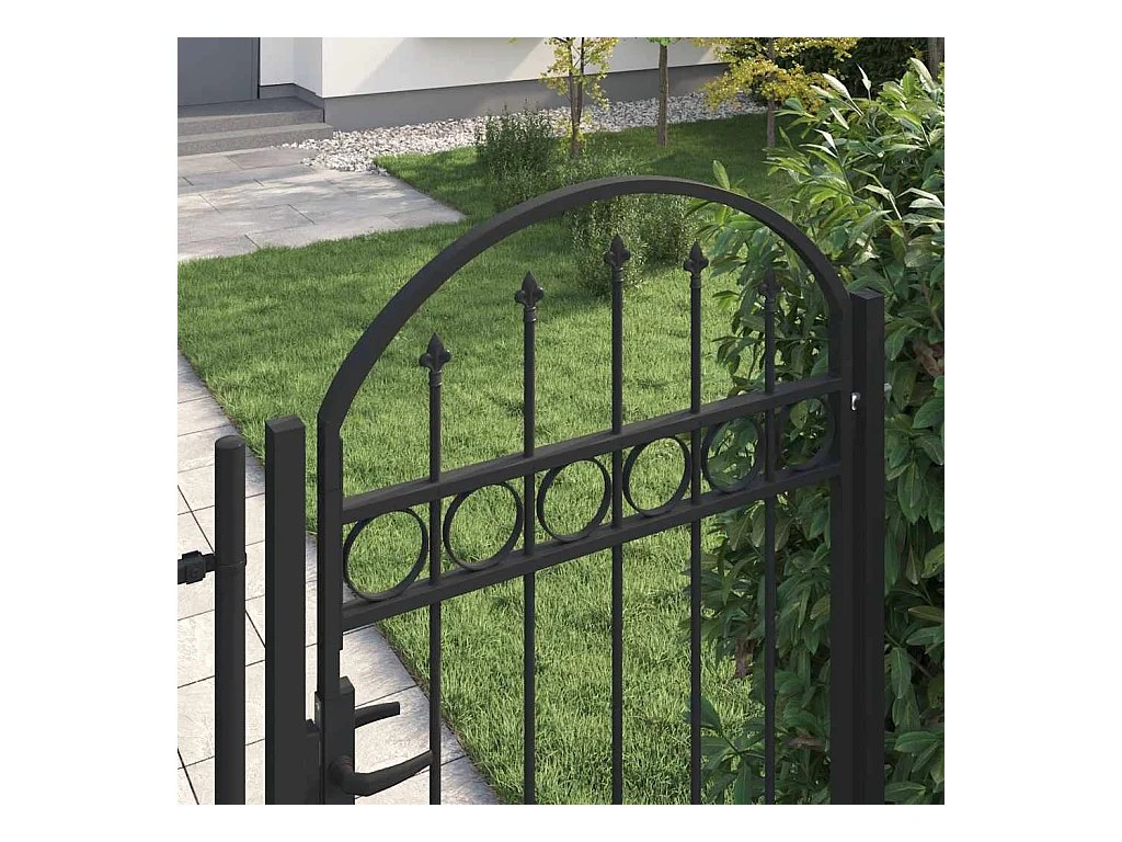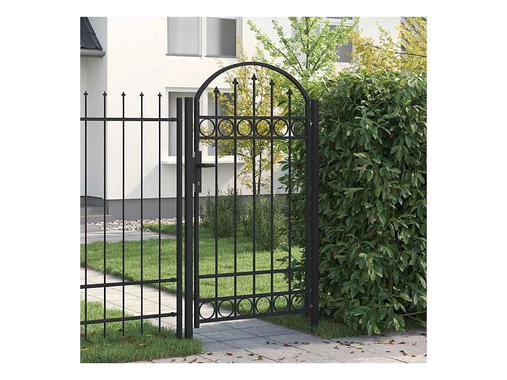 Puerta de valla con arco superior de acero 104 x 175 cm Color negro