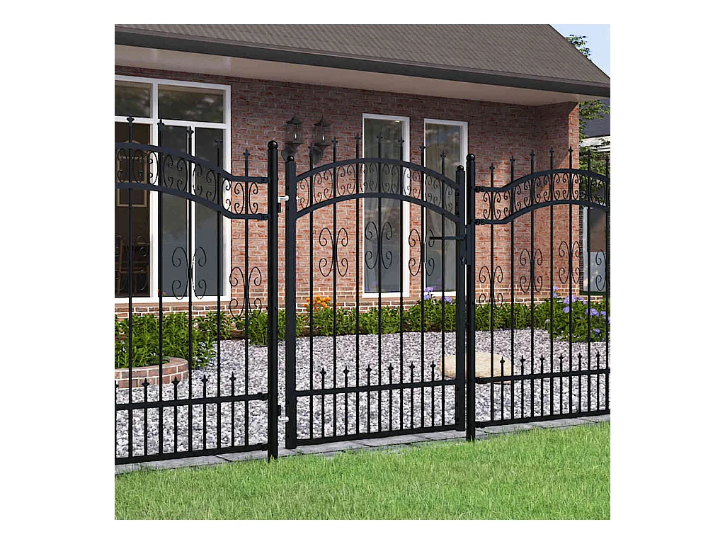 Puerta de valla con arco superior de acero 104 x 175 cm Color negro