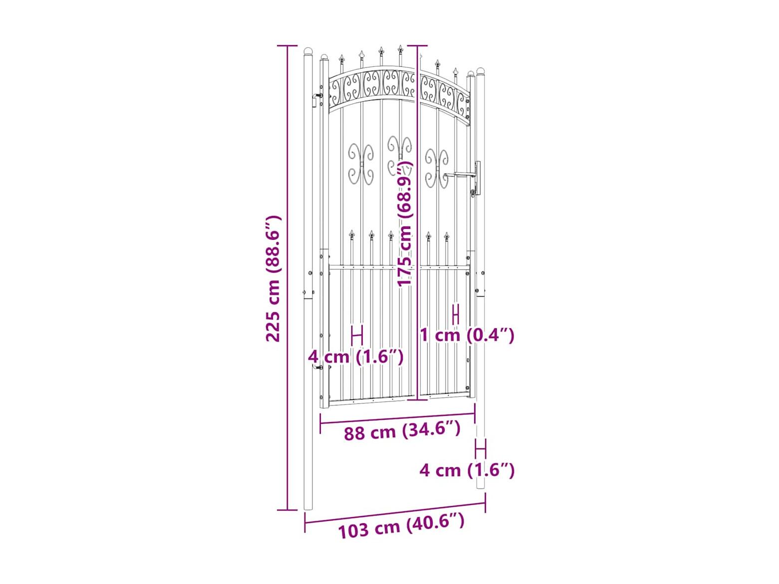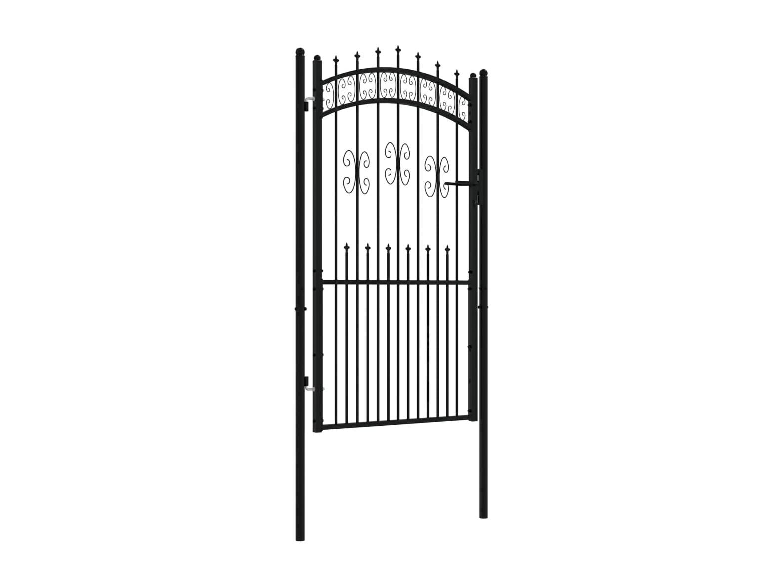 Puerta de valla arqueada con 2 postes, 105 x 204 cm, color negro