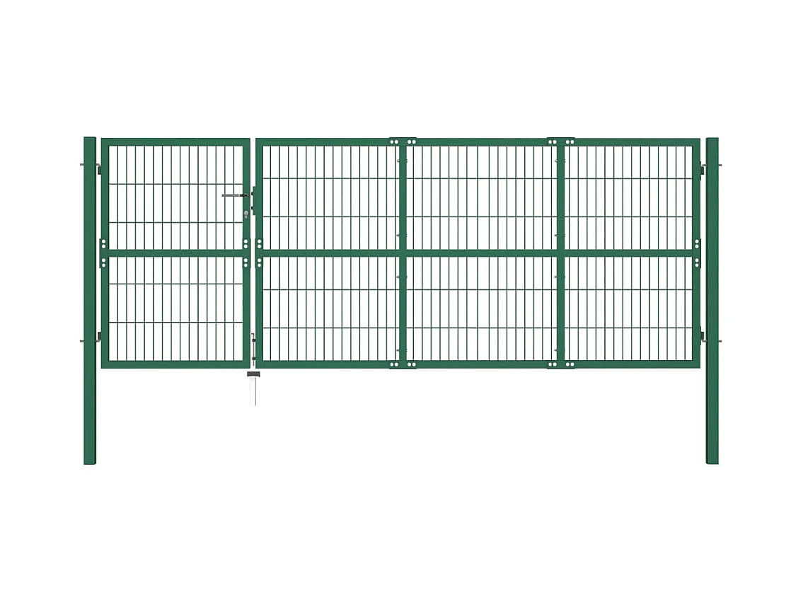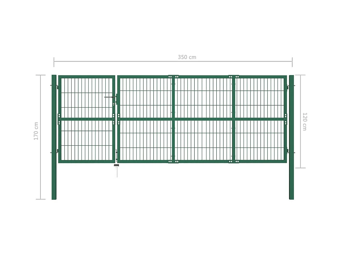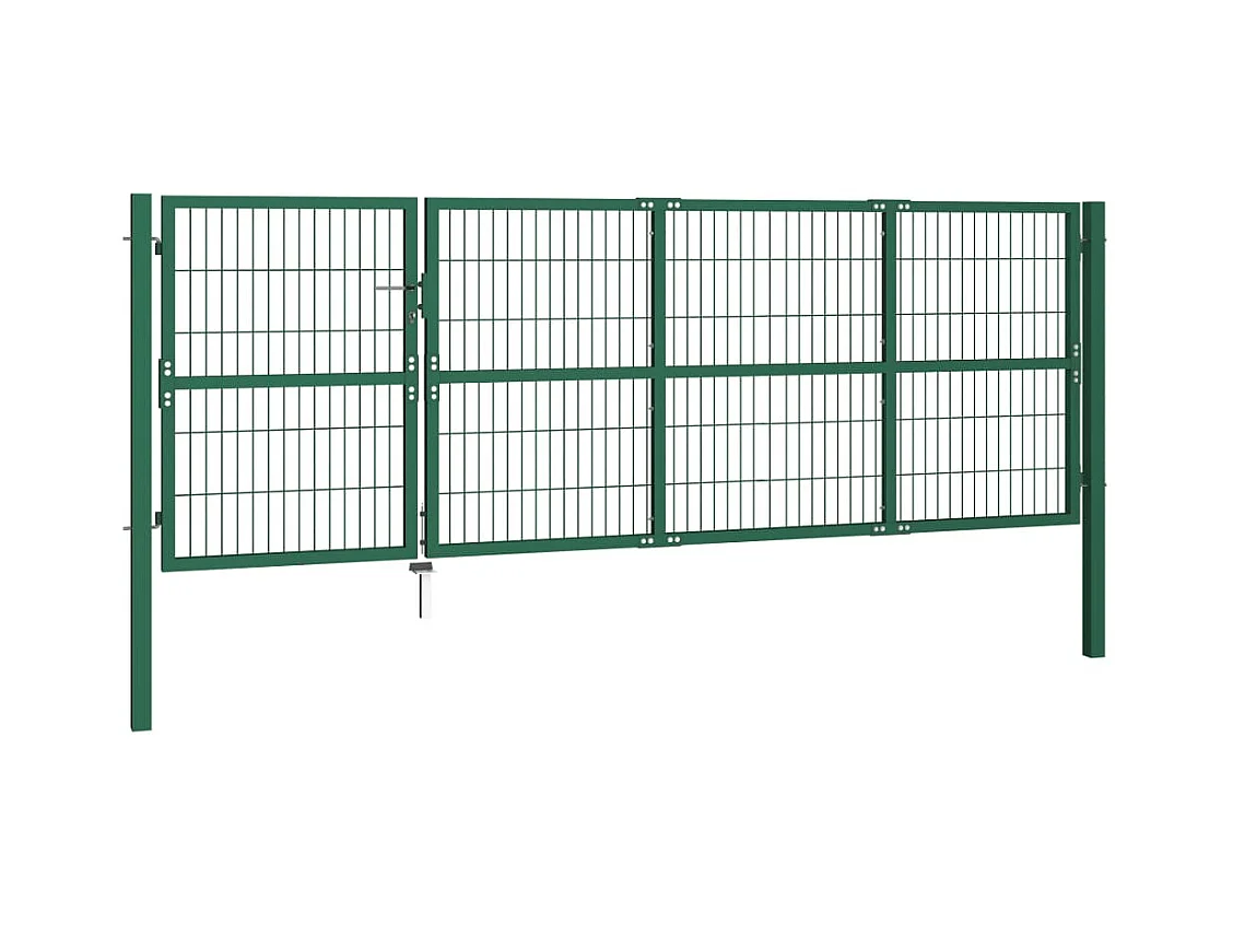 Puerta de valla de jardín con postes 350x120 cm acero verde