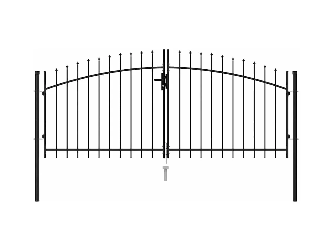 Puerta doble con arco superior Acero 300x125 cm Negro