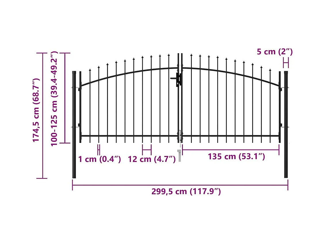 Puerta de valla con arco superior de acero 104 x 175 cm Color negro
