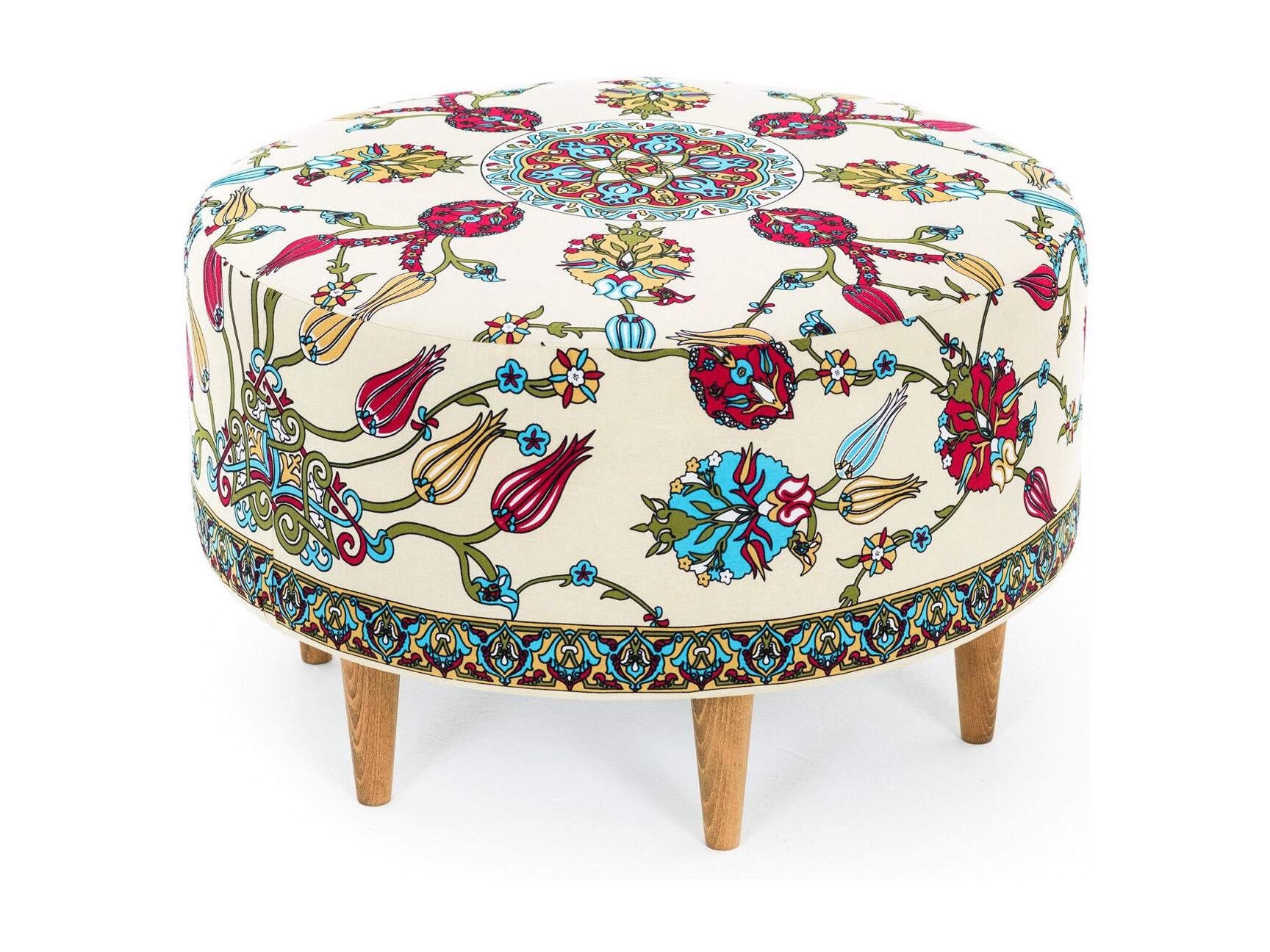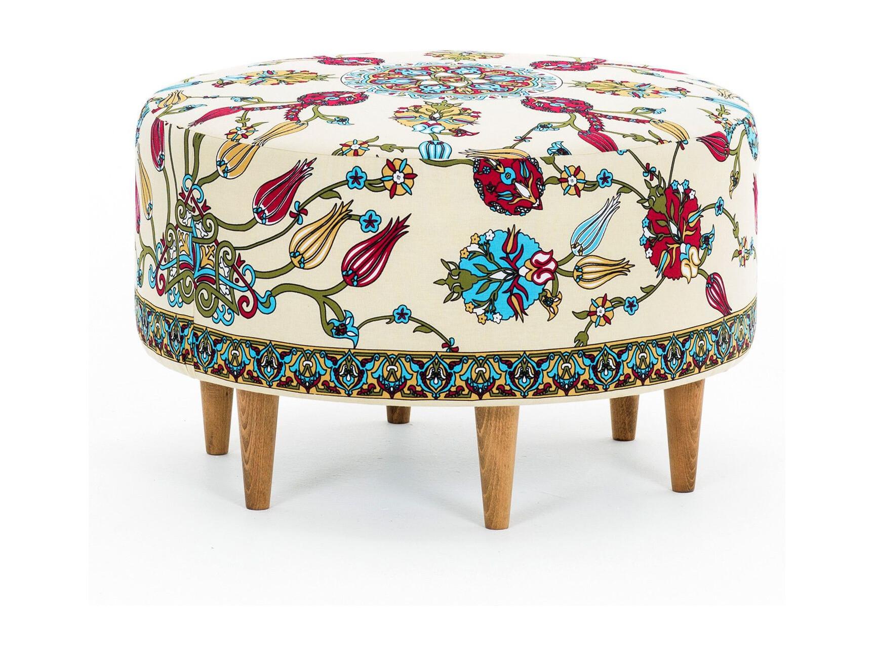 Puf Altadena 167, Multicolor, 40cm, Diámetro: 65, Tapiz, Patas: Madera