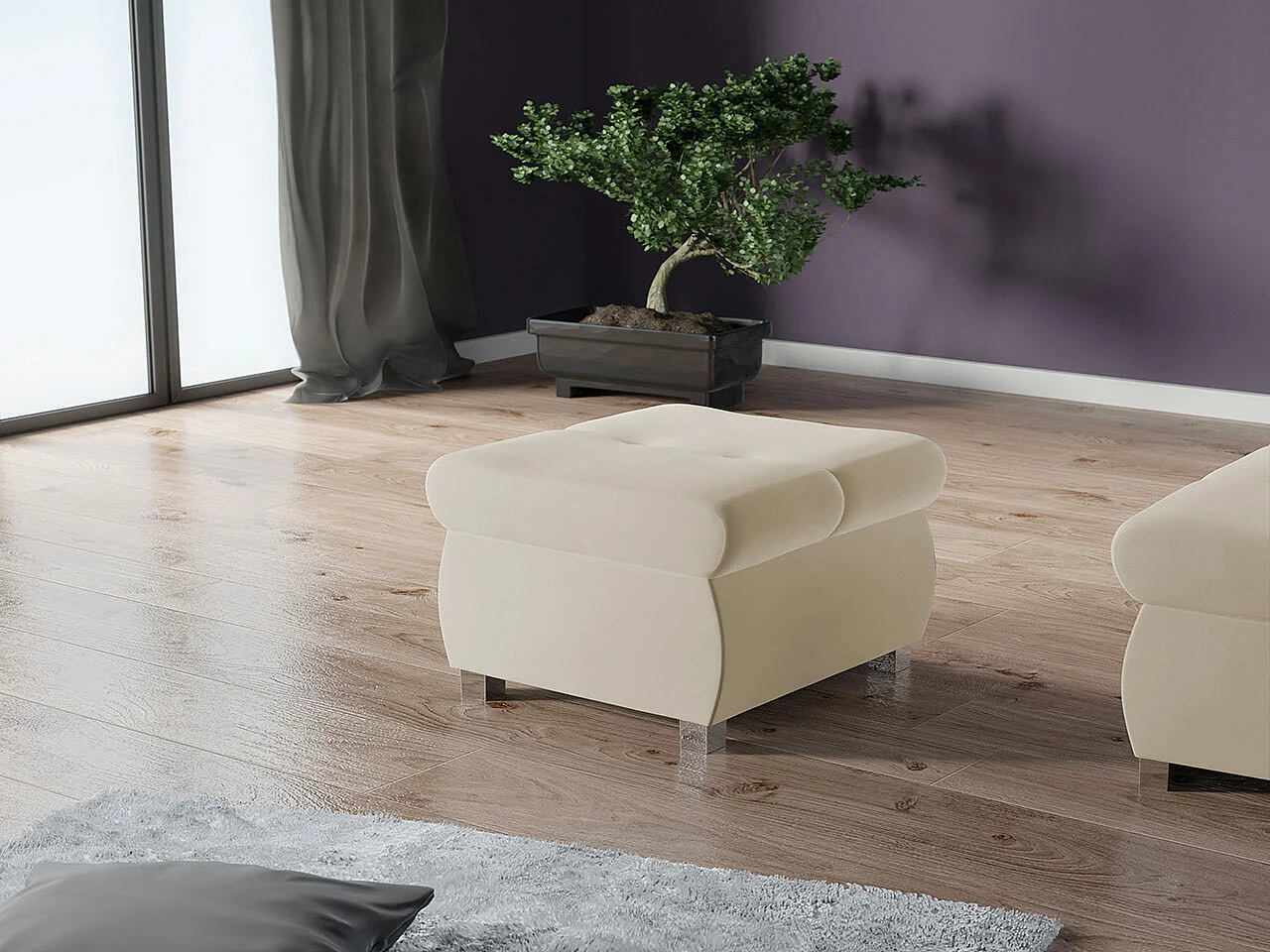 Puf Comfivo 122, De color marrón claro, 39x60x60cm, Tapiz, Patas: Metal