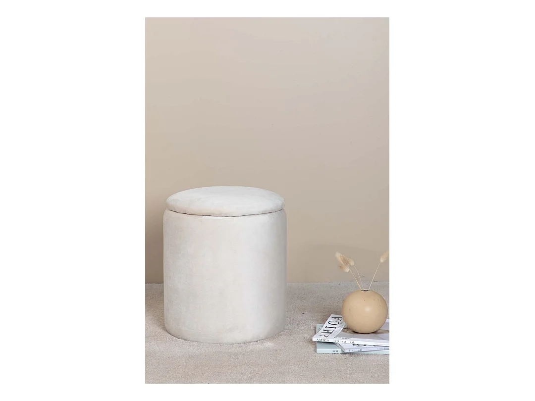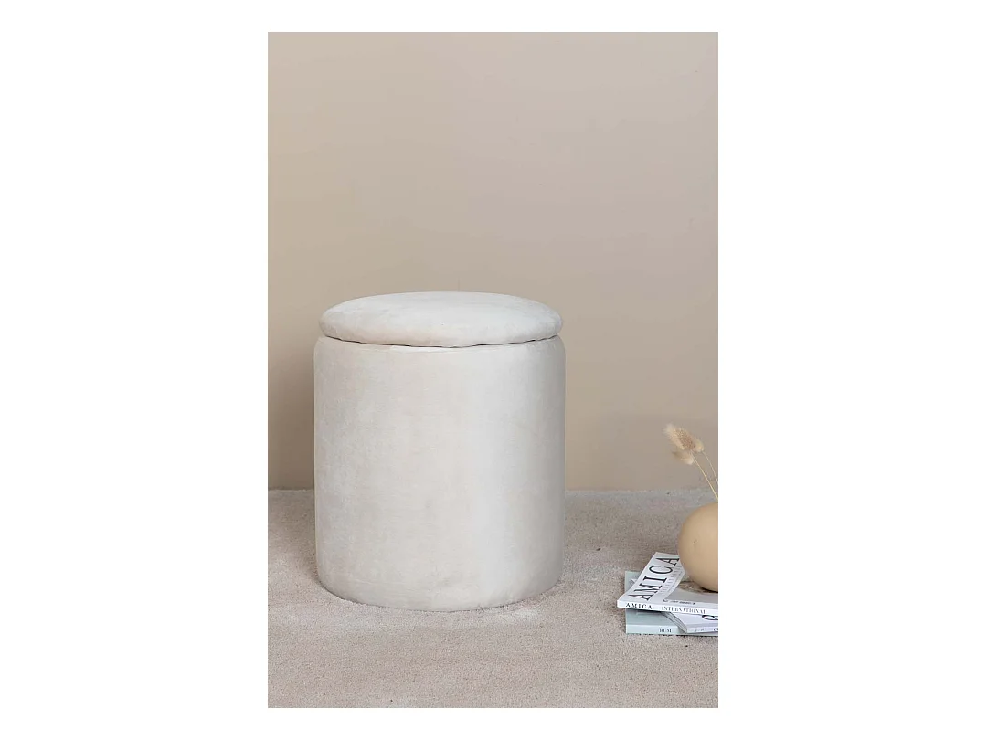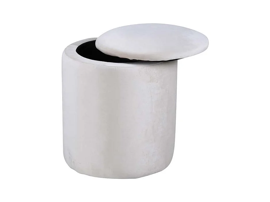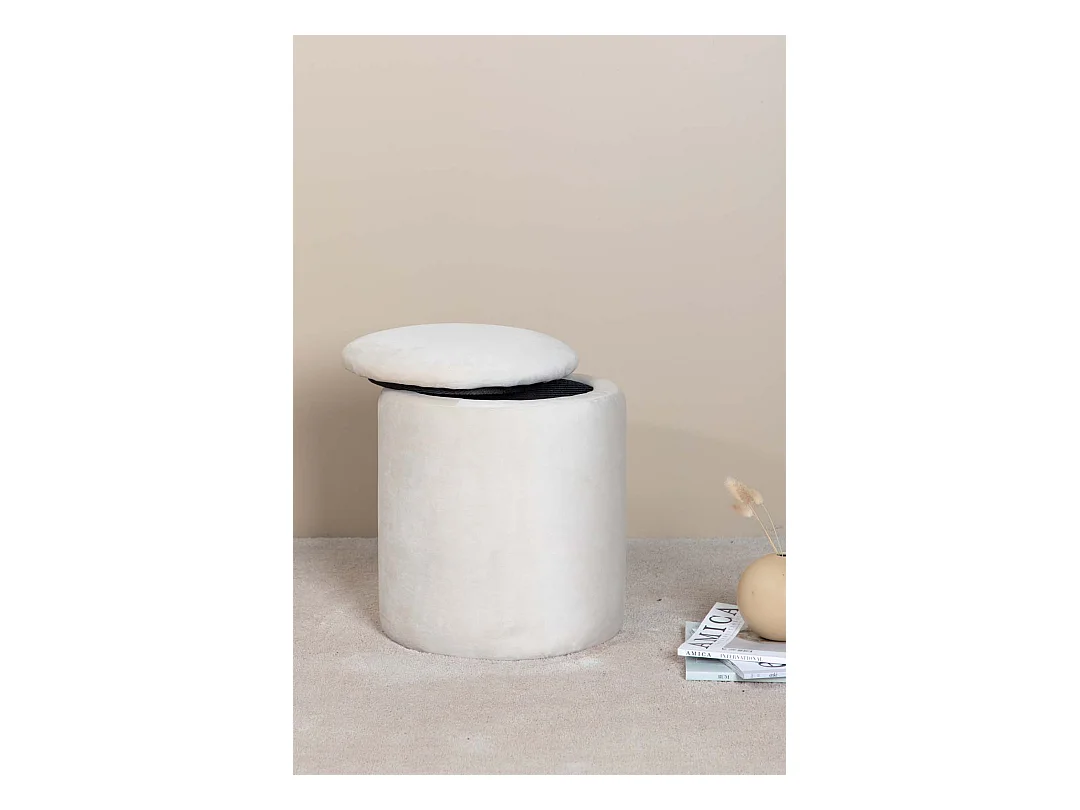 Puf Limpen Ø32cm velour con almacenaje blanco.