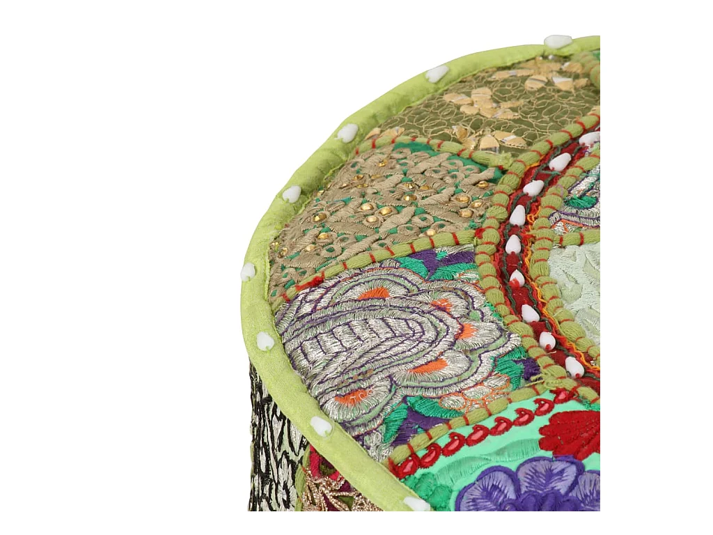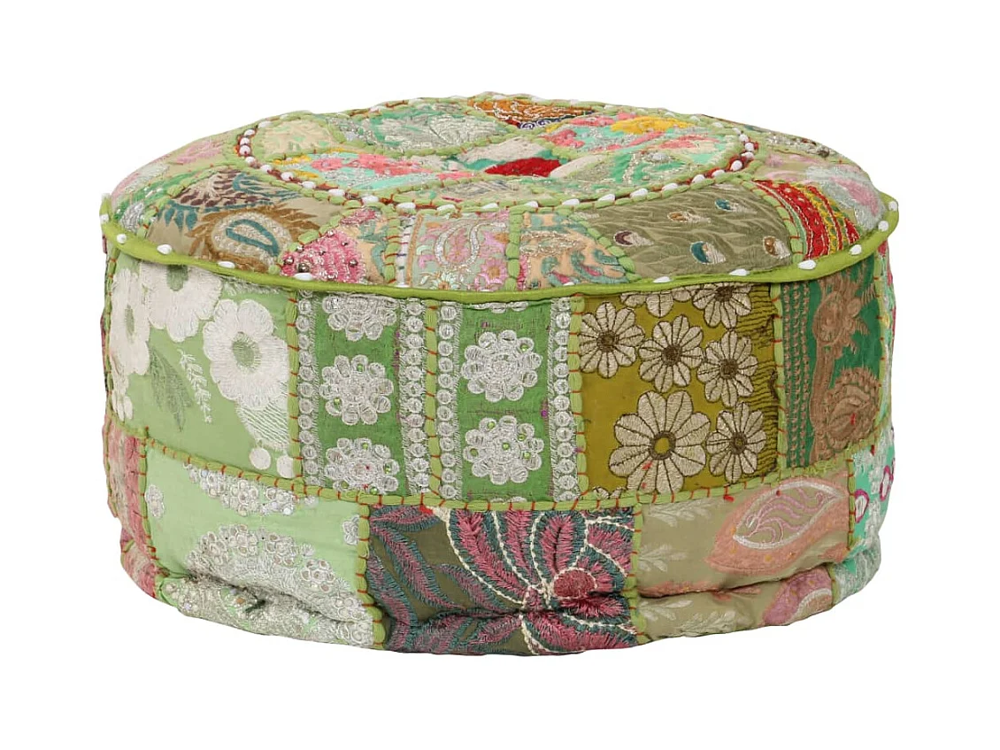 Puf redondo de pachtwork algodón hecho a mano 40x20 cm verde