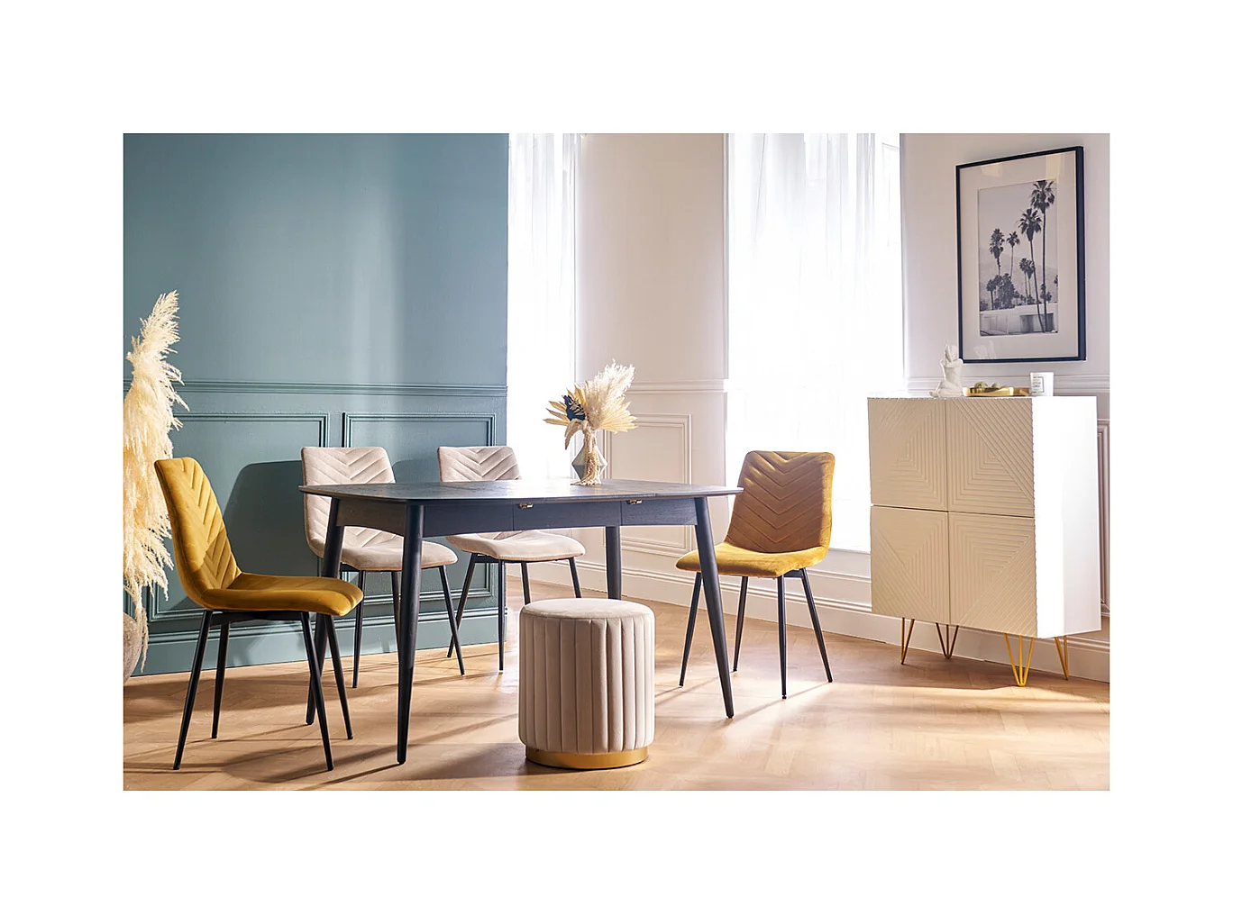 Puf redondo de terciopelo azul petróleo y metal dorado D54 cm AMAYA