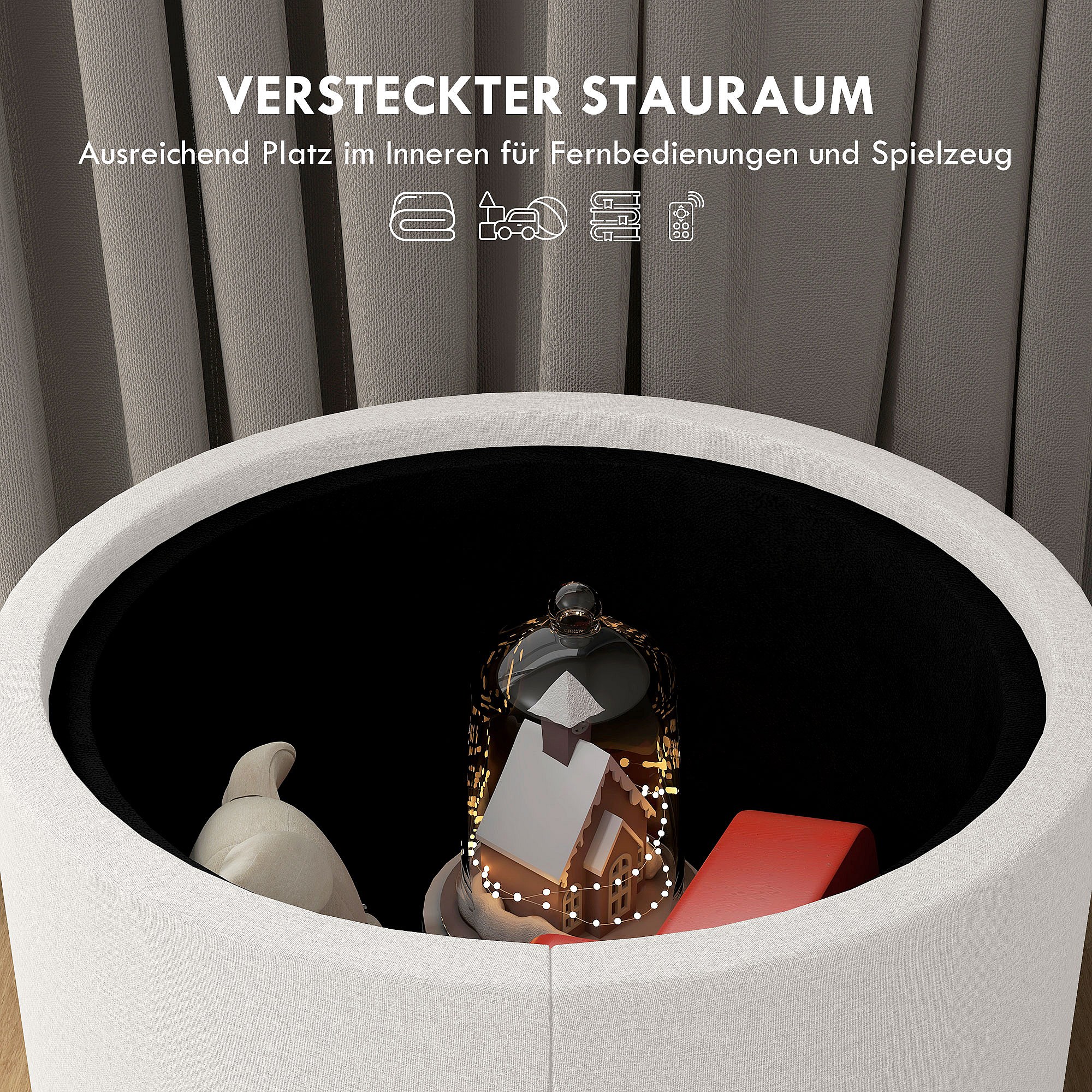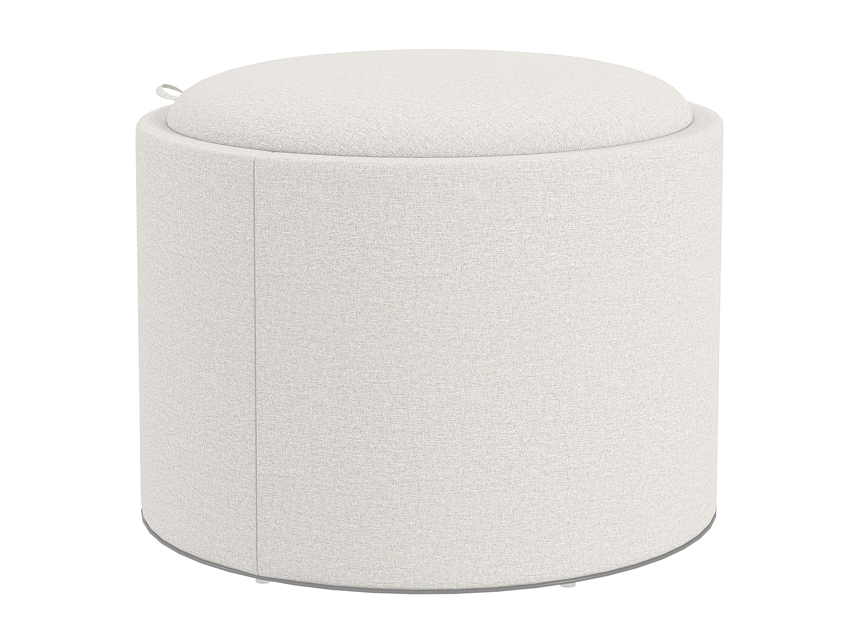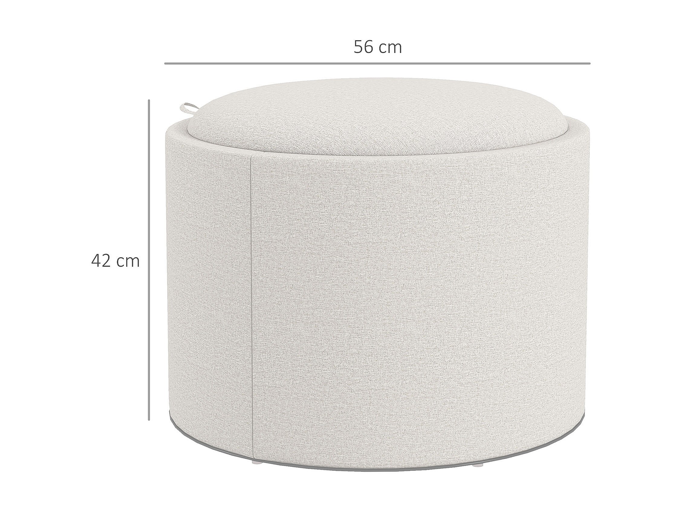 Puf redondo tapizado con espacio de almacenaje, tejido de lino, color crema (56 x 56 x 42 cm)