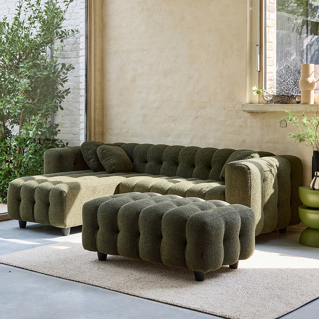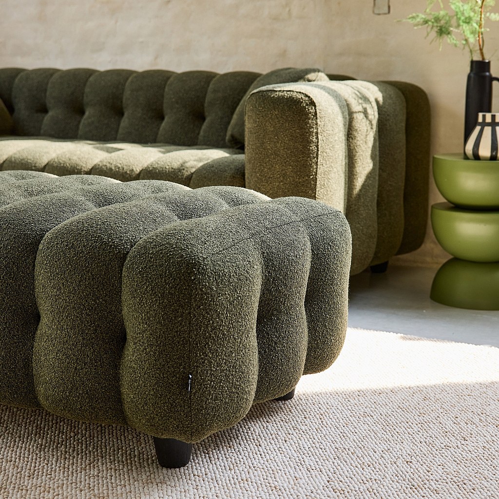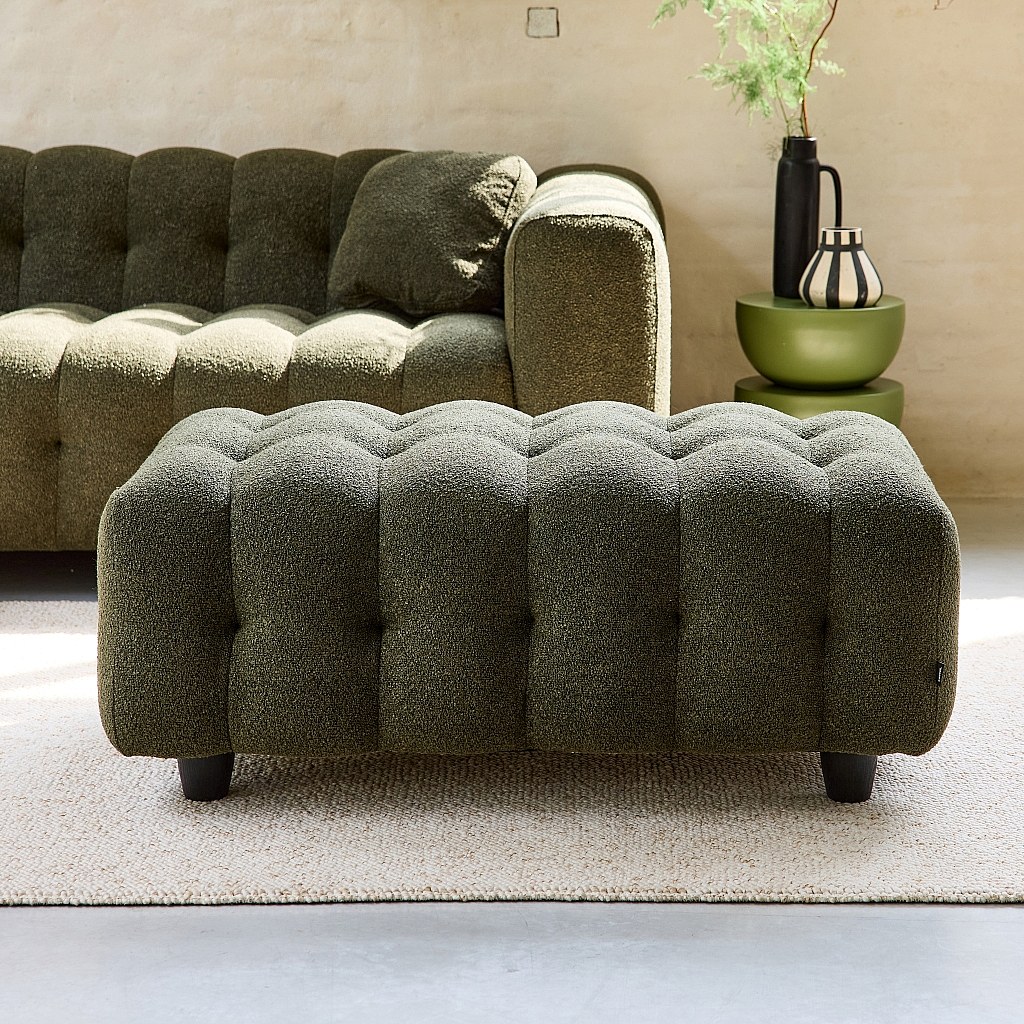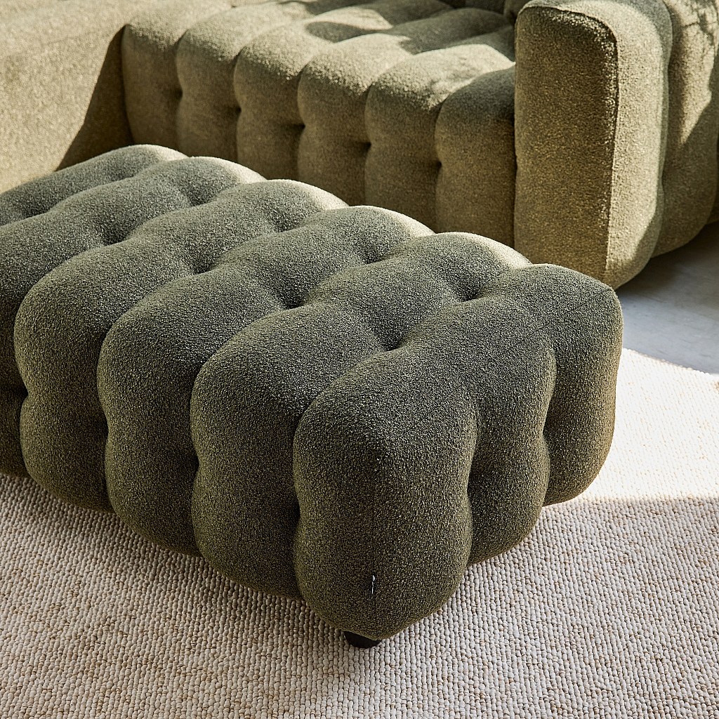 Puff, reposapiés para sofá 2 plazas leon borreguito texturizada verde