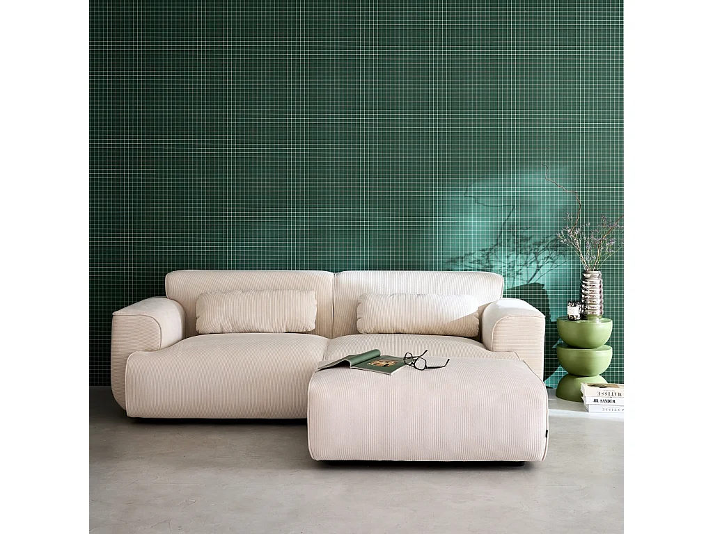 Reposapiés para sofá wallas terciopelo de pana fina, 3 plazas crema