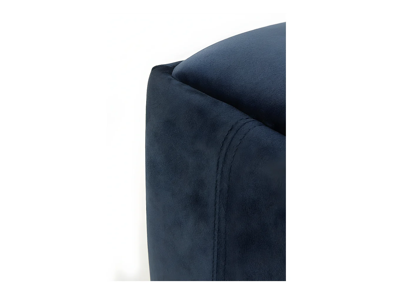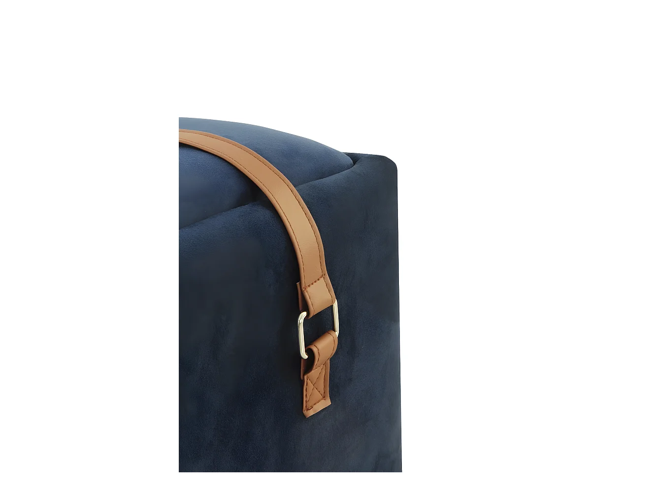 Puff tapizado con tejido aterciopelado azul con asa imitacion piel