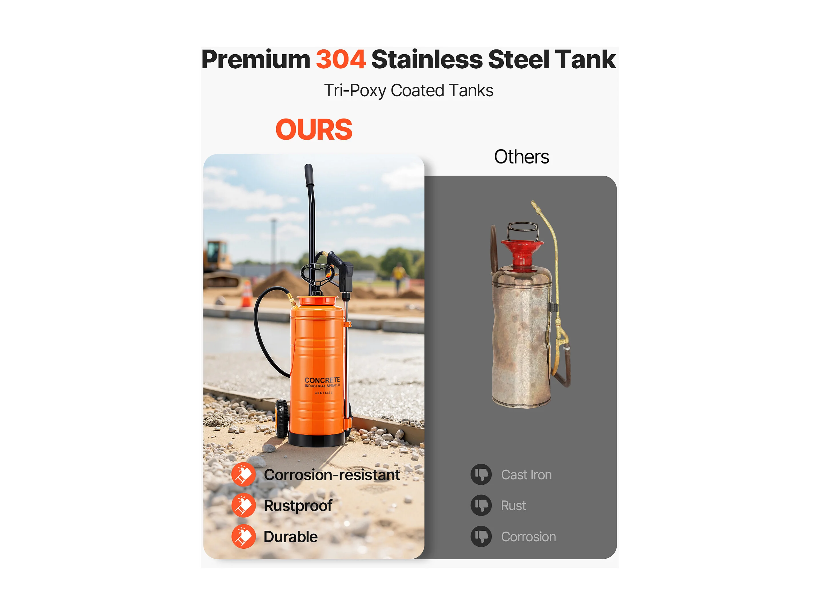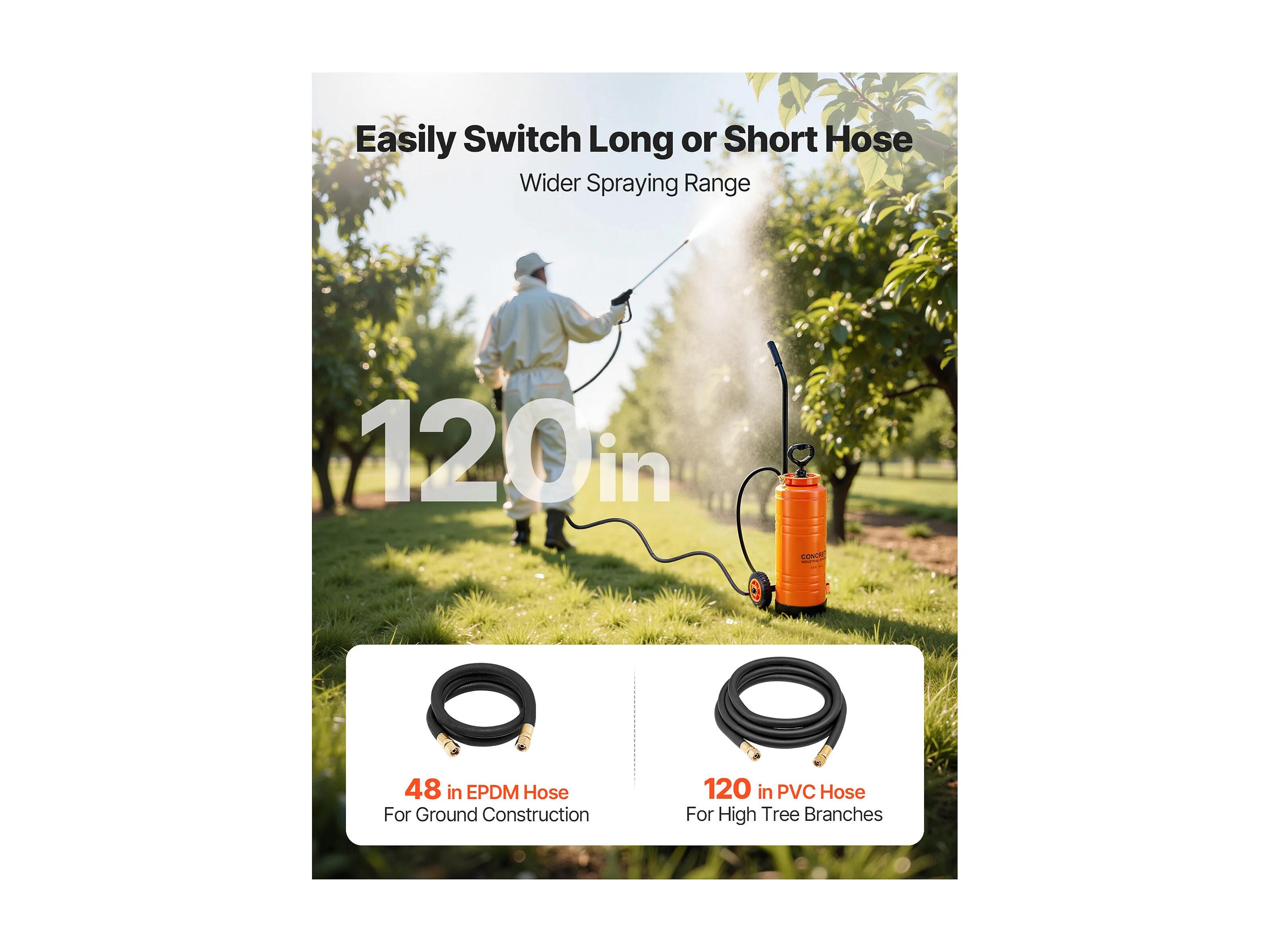 Pulverizador SucceBuy de Acero Inoxidable Industrial con Ruedas, Capacidad Aprox. 13,2 l, con Lanza de 52 cm, Manguera de 1,2 m y 3 m, 2 Boquillas de Latón
