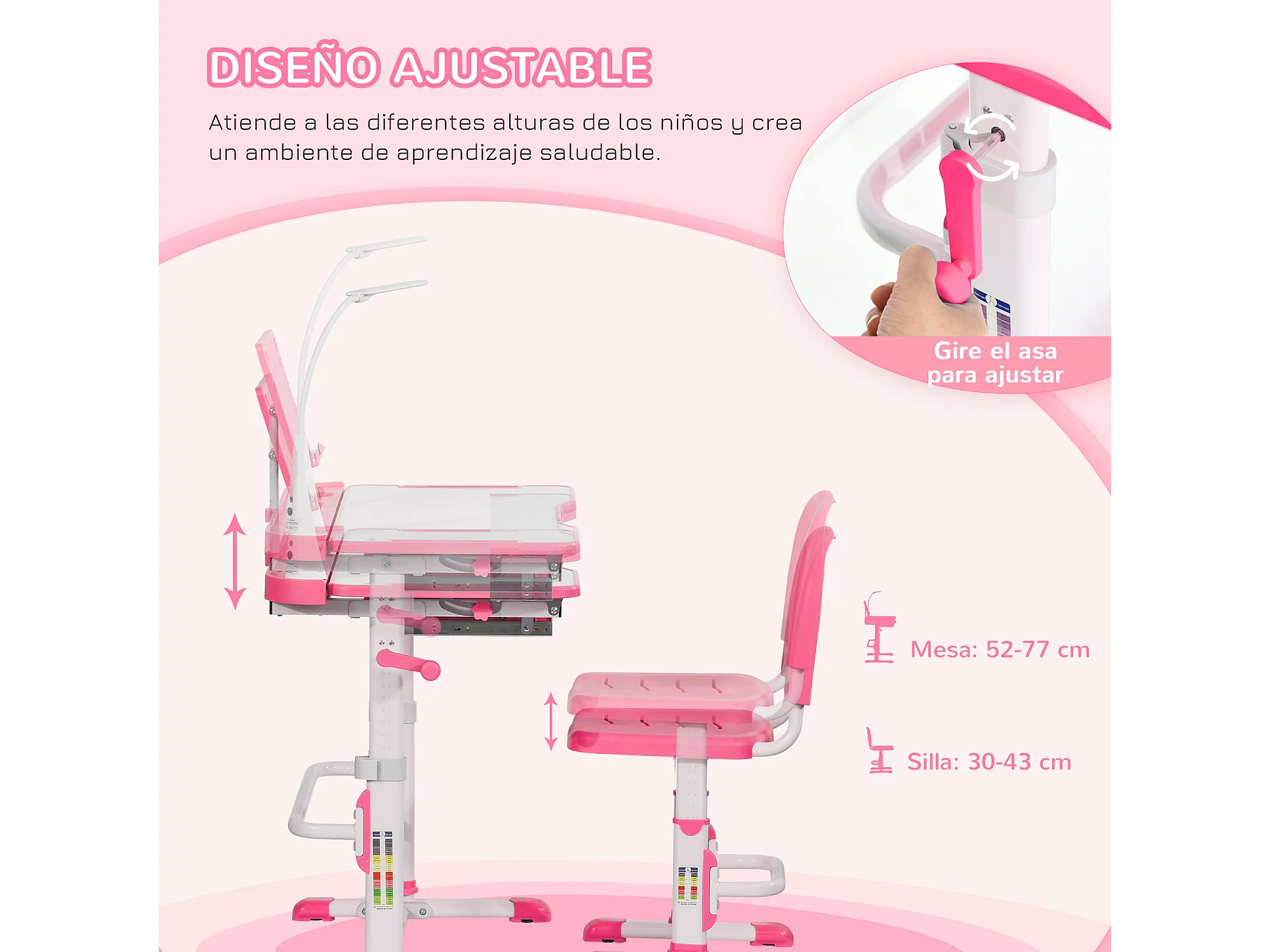 Pupitre infantil rosa 80x49.5x104 cm HOMCOM