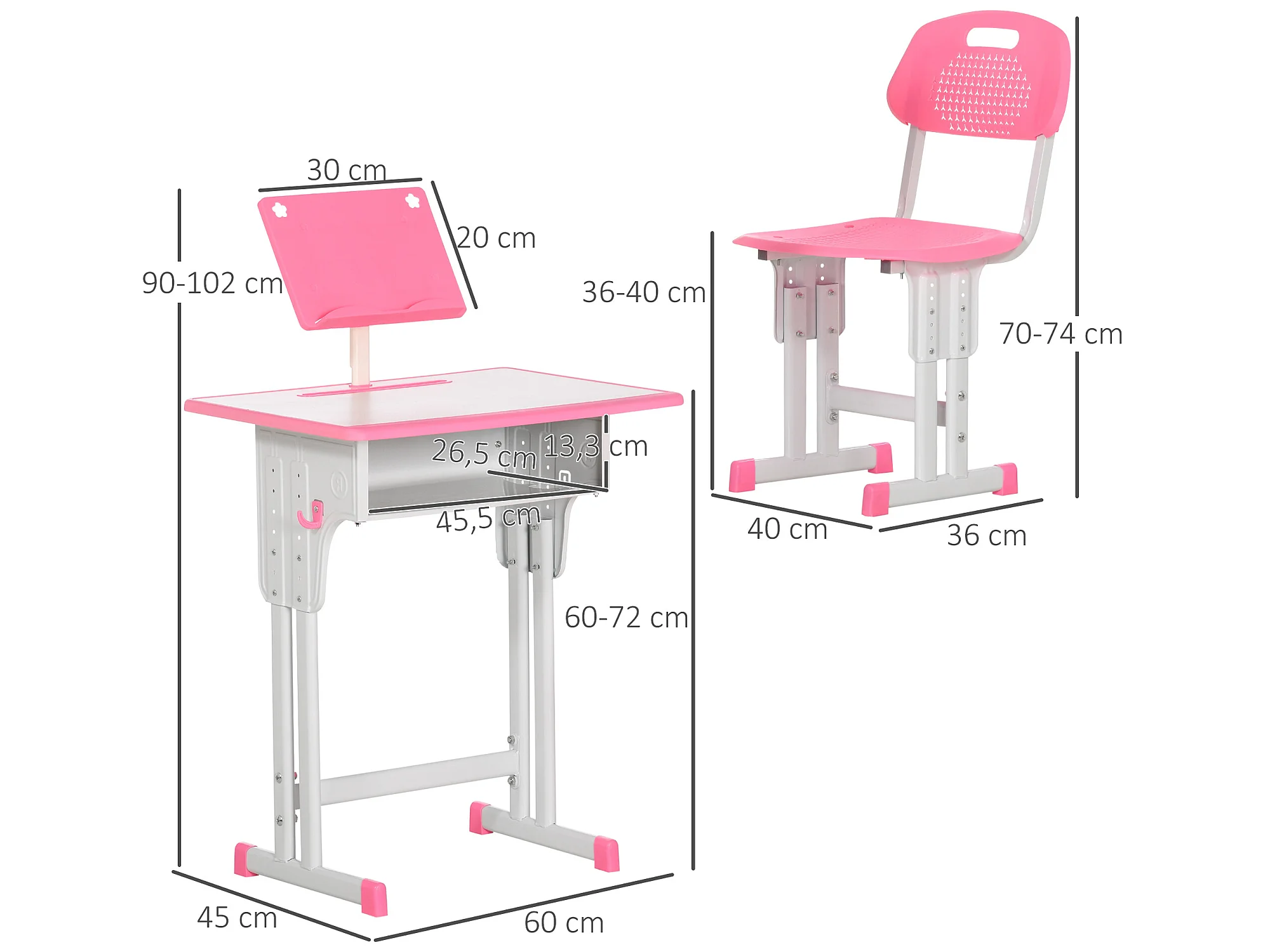 Pupitre infantil rosa y blanco 60x45x102 cm HOMCOM