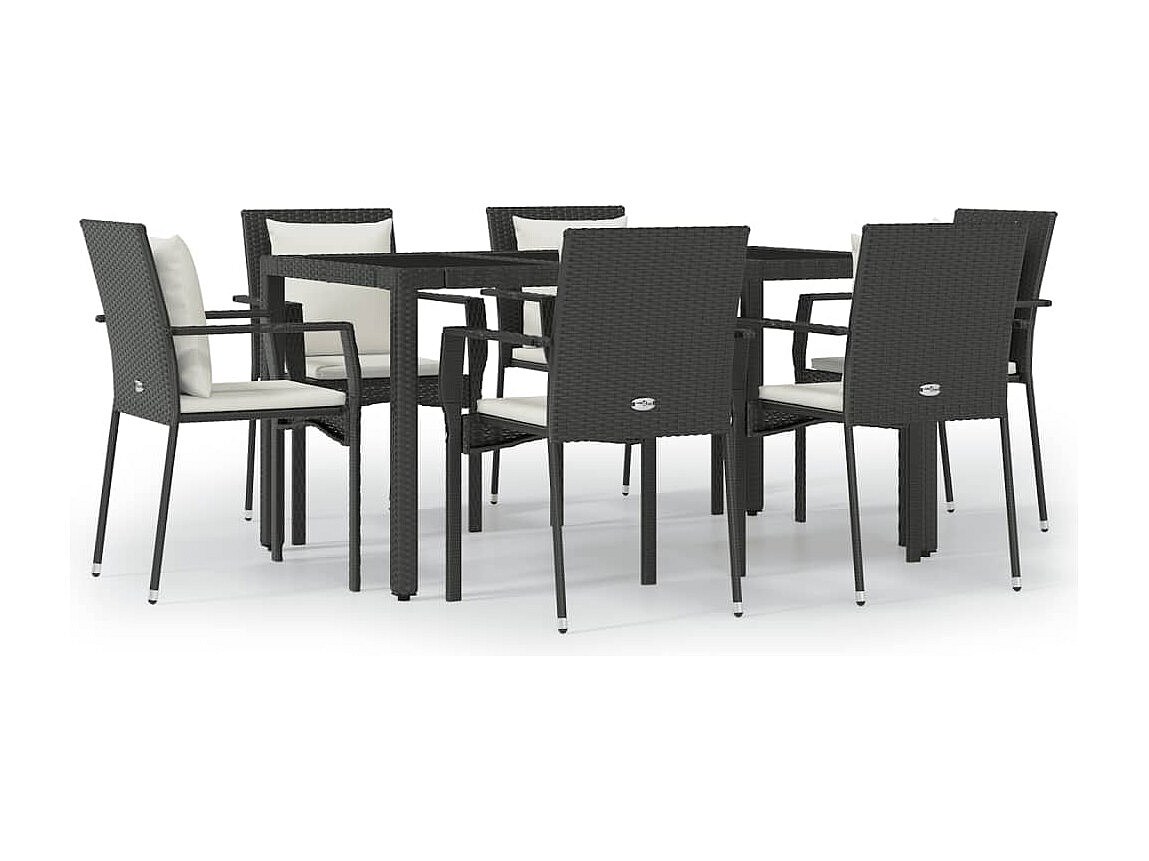 Van Buren Set de comedor de jardín 7 pzas y cojines ratán sintético negro