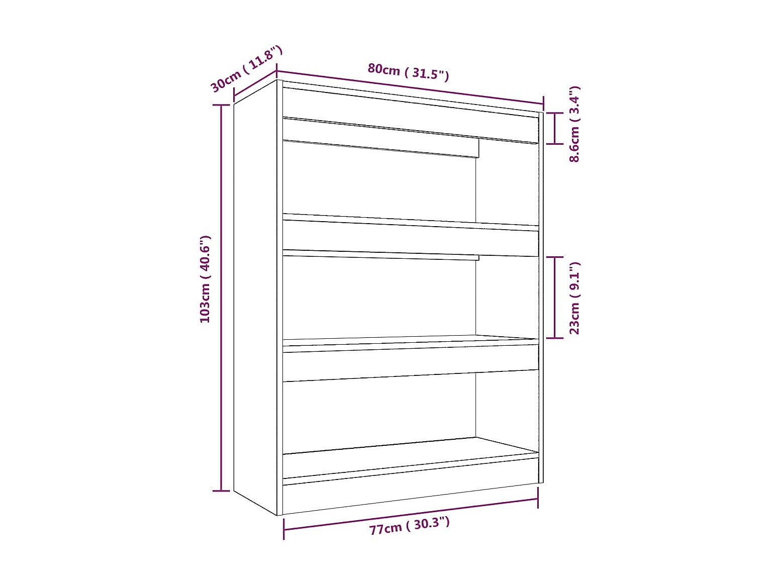 Jakob Estantería/divisor madera ingeniería roble ahumado 80x30x198 cm