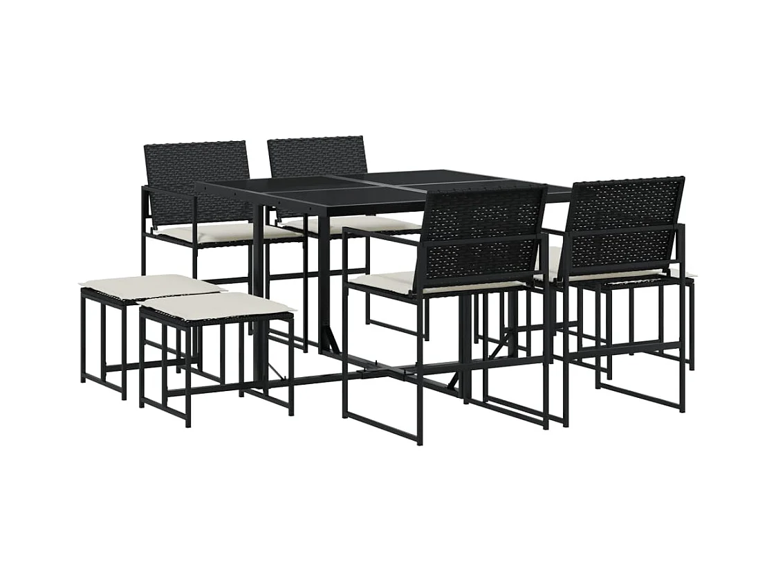 Quintus Set de comedor de jardín 9 pzas y cojines ratán sintético negro
