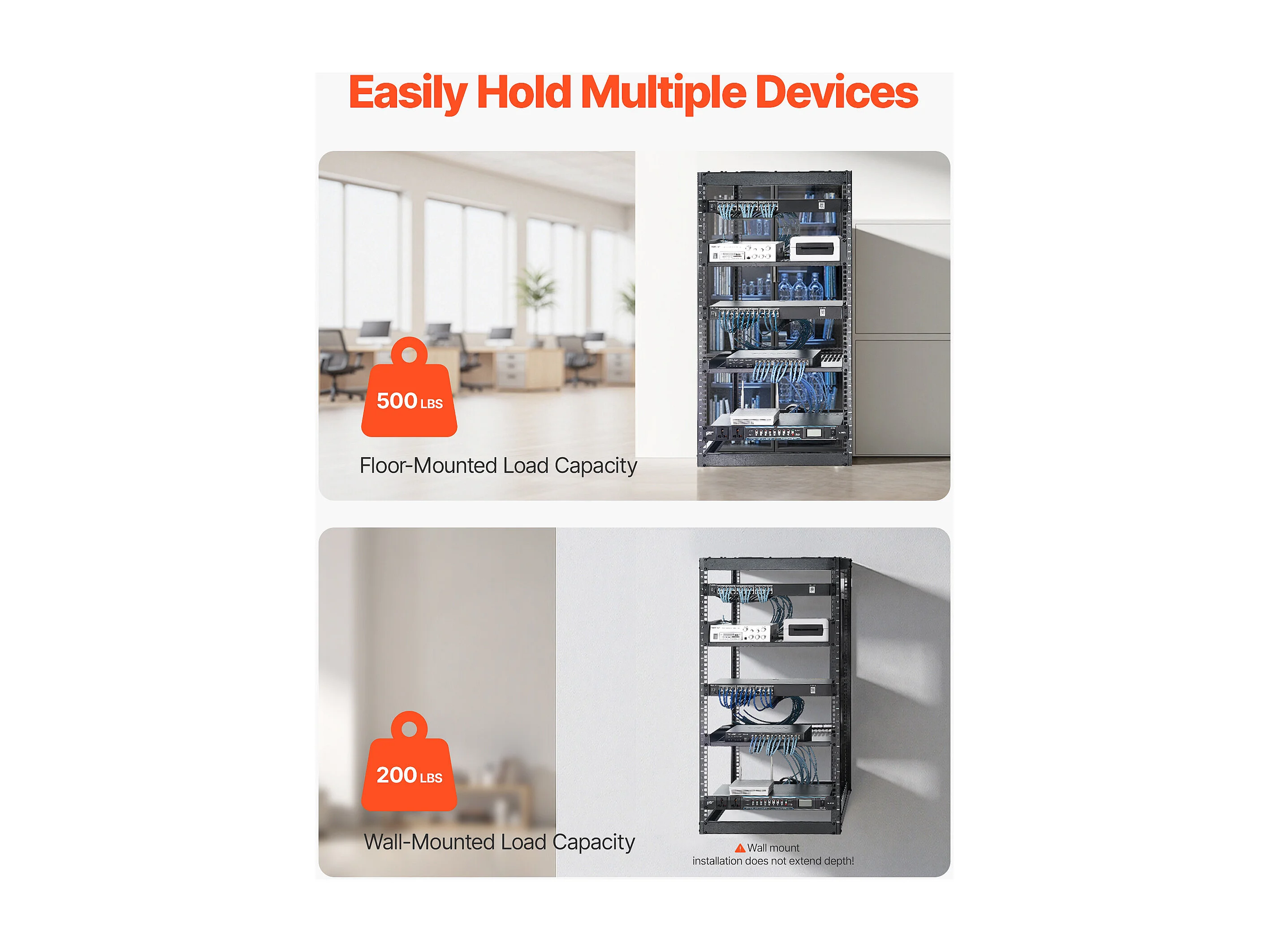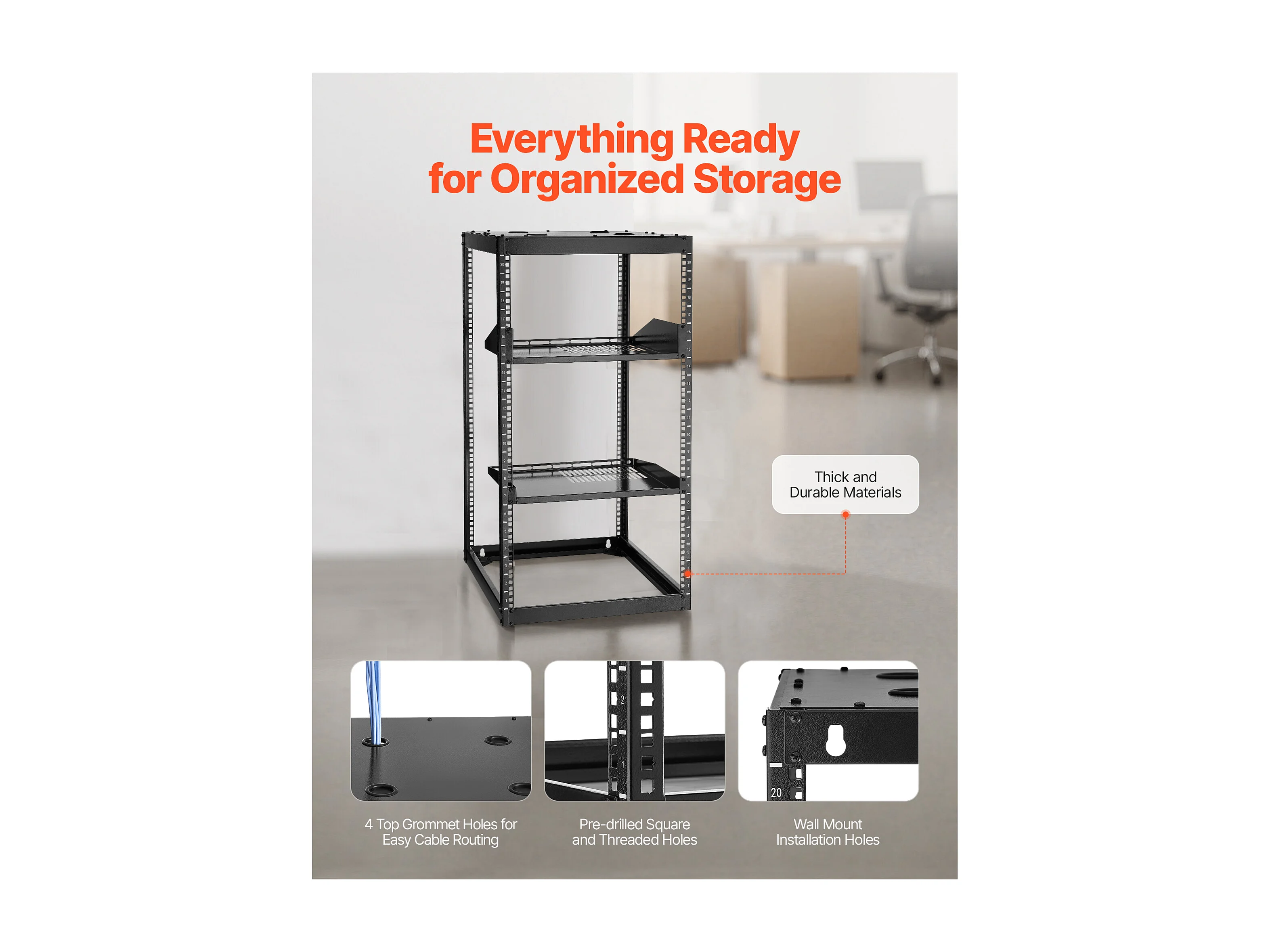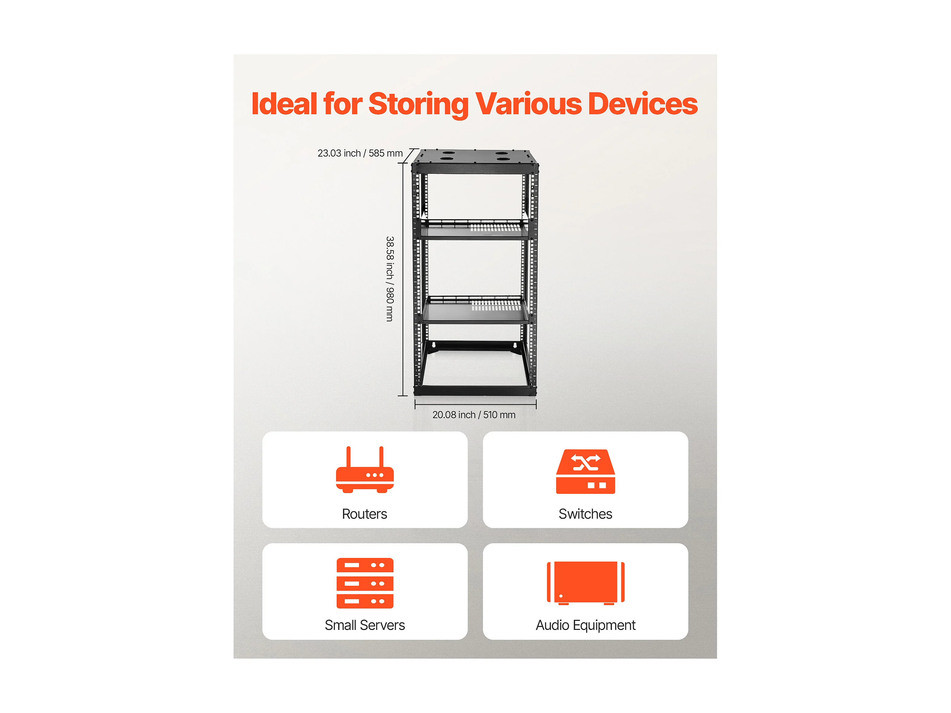 Rack de Servidor SucceBuy a Marco Abierto 20U Soporte Red de Autoportante o Mural, Profundidad 58.5 cm, con Estantes Ventilados, Material de Montaje