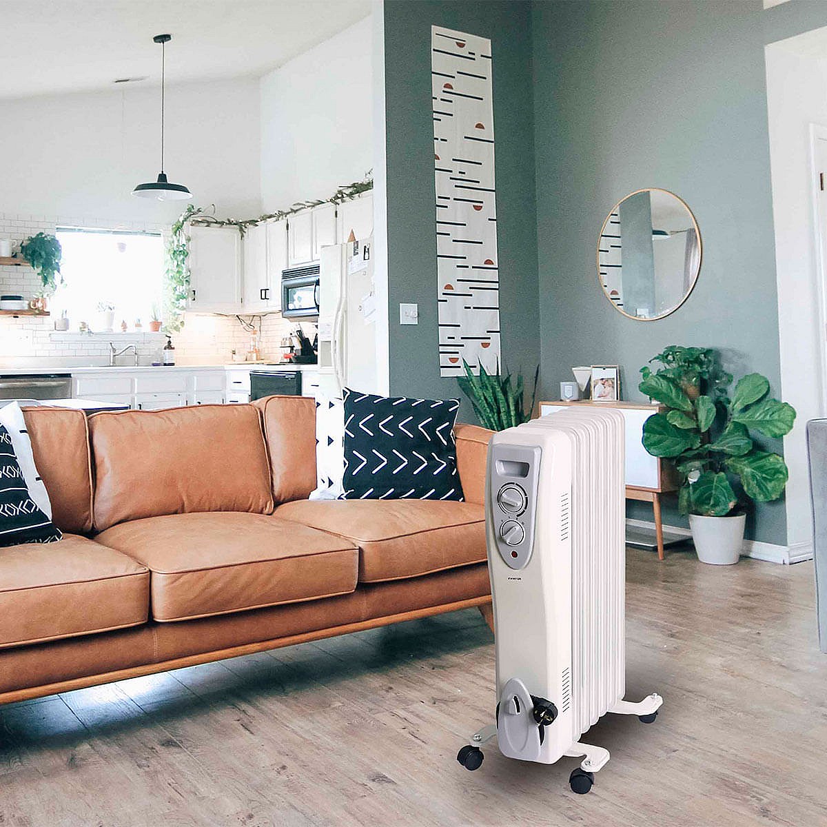 Radiador de aceite Ready Warm 7000 Space 360º Cecotec 7 módulos 1500W con ruedas blanco
