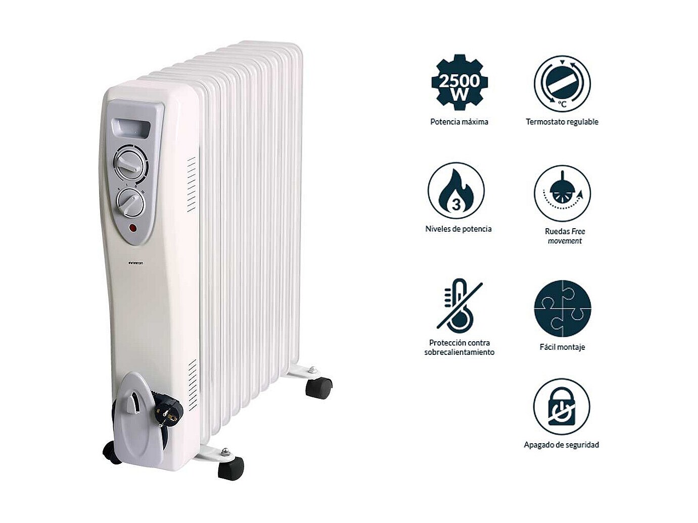 Radiador de aceite Infiniton HOR-2500 2500W 3 niveles de potencia blanco