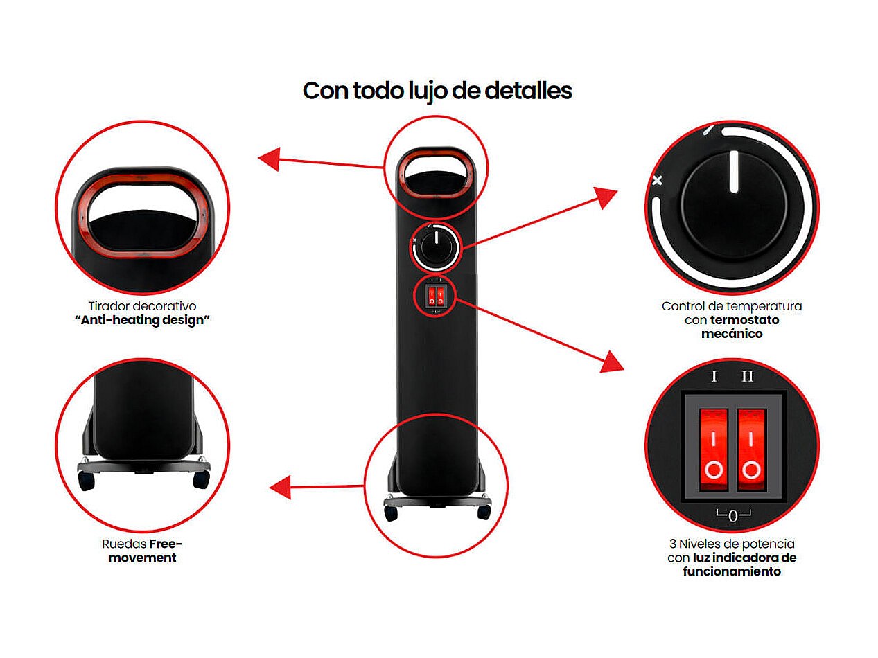 Radiador de aceite Orbegozo RN2000 2000W 9 elementos luces LED negro