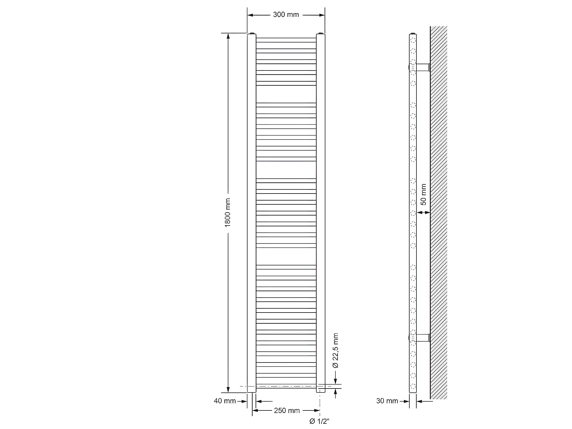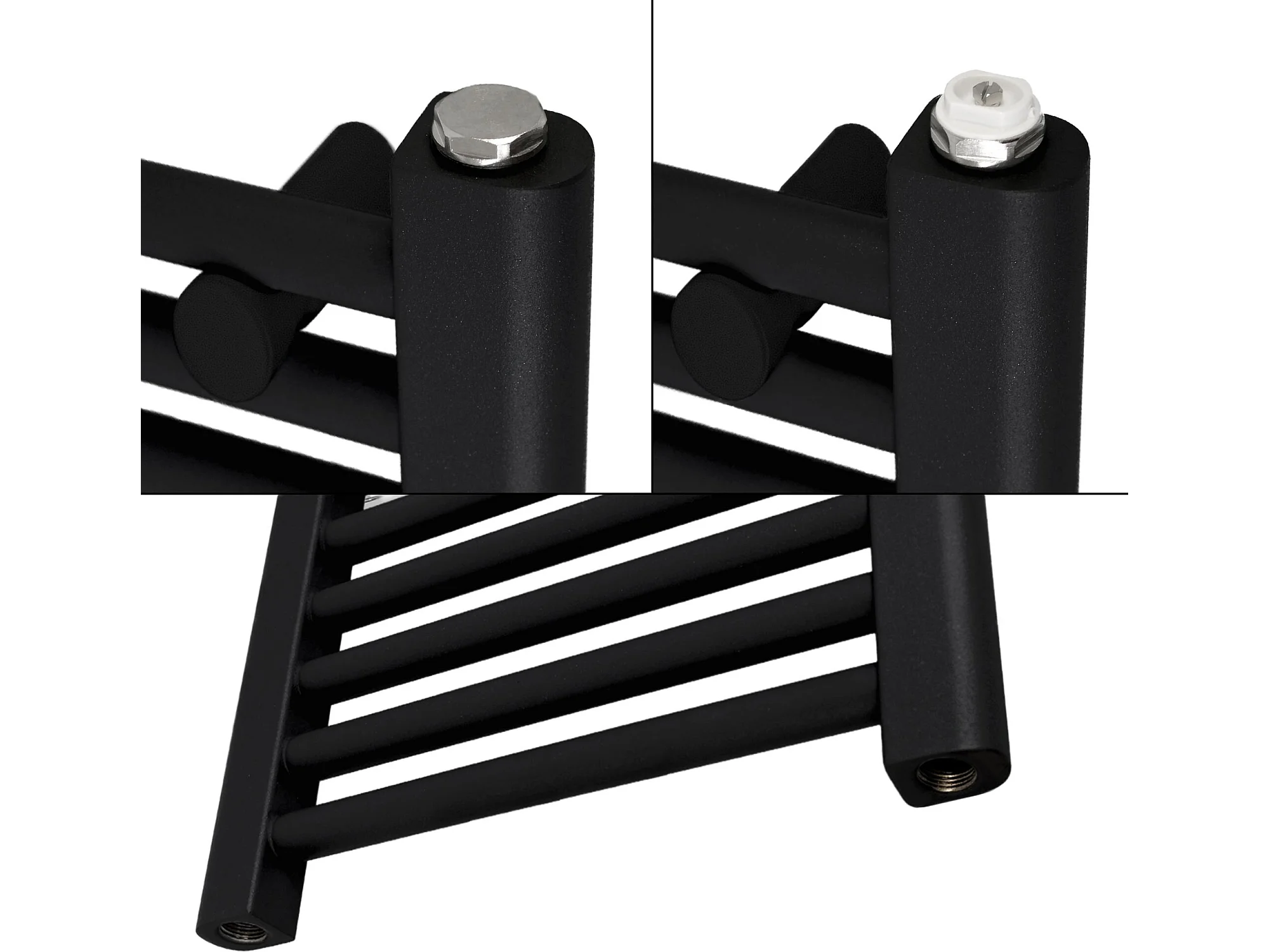 Radiador de baño 300x1800 mm negro mate con conexión lateral LuxeBath