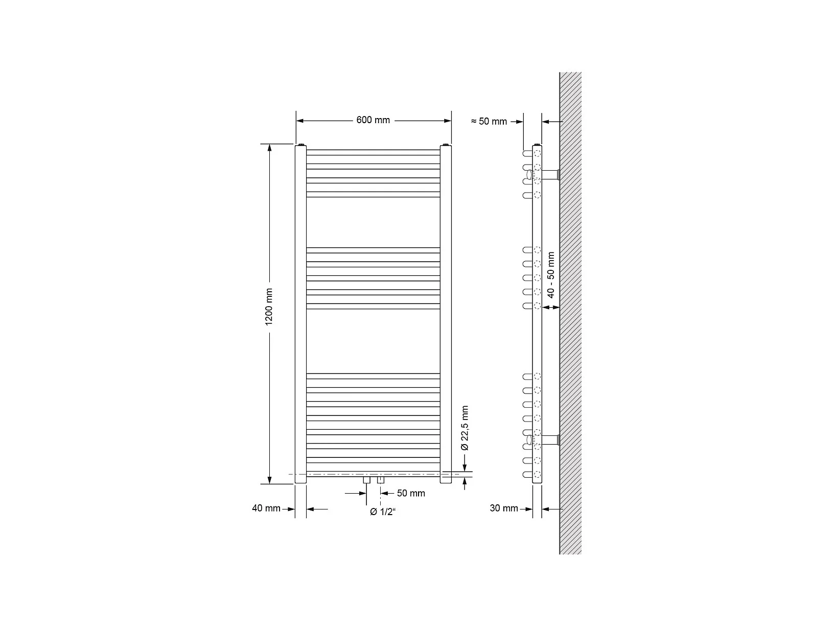 Radiador de baño radiador antracita conexión lateral 60x120 cm
