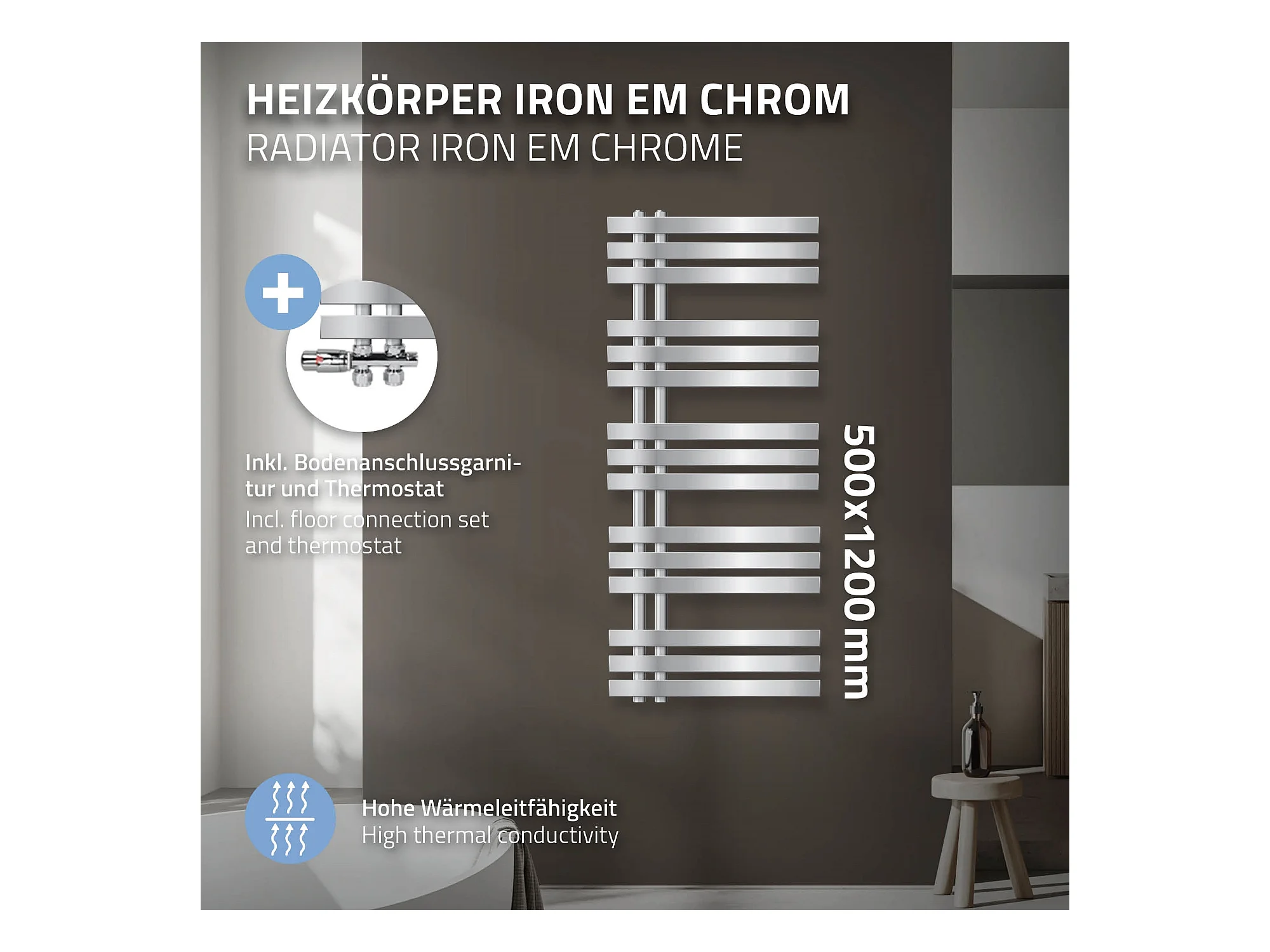 Iron EM Radiador toallero de diseño cromado 600 x 1200 mm con conexión al suelo