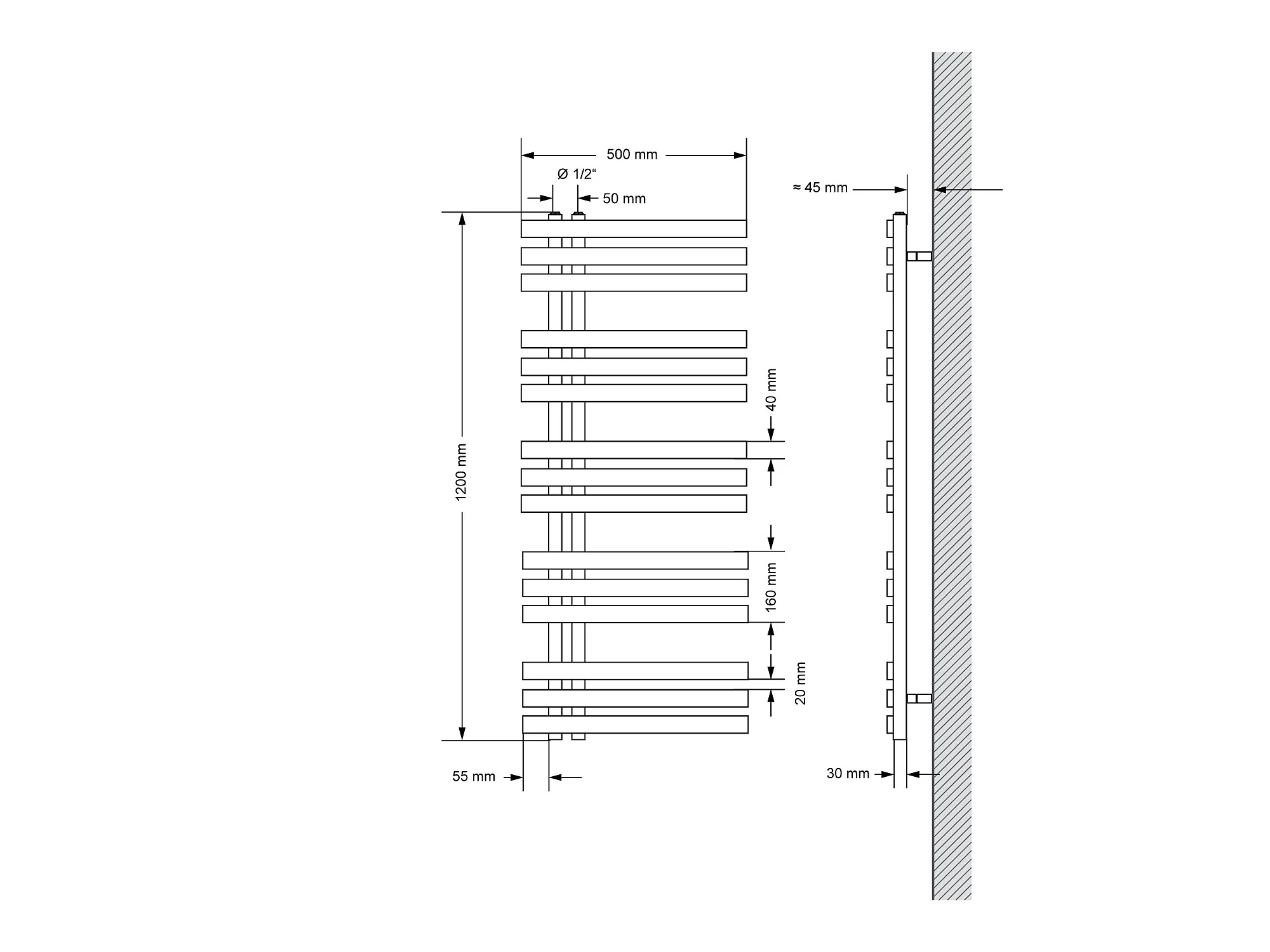 Iron EM Radiador toallero de diseño cromado 600 x 1200 mm con conexión a pared