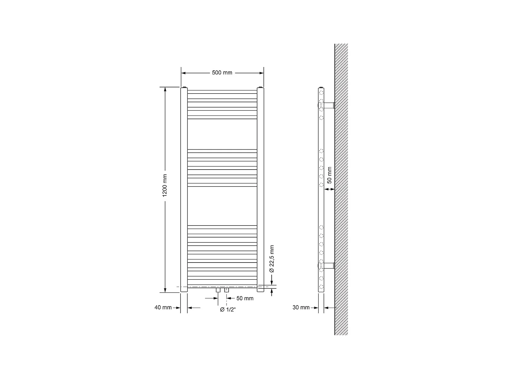 Radiador toallero de baño 50 x 120 cm calefactor blanco con conexión lateral