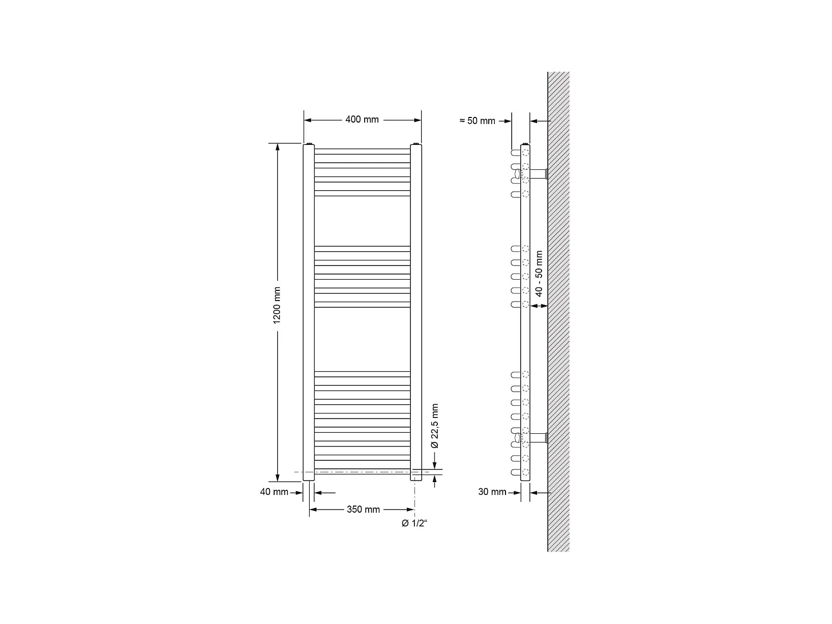 Radiador toallero de baño 40x120 cm calefactor antracita estufa diseño panel