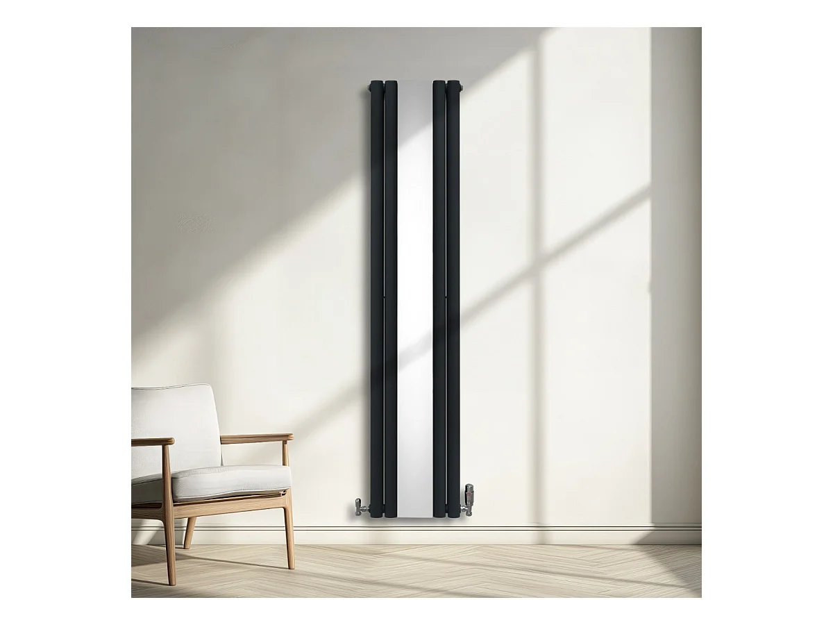 Radiador Plano con Espejo y Válvulas Cromadas TVR - 1800 mm x 425 mm - Gris Antracita