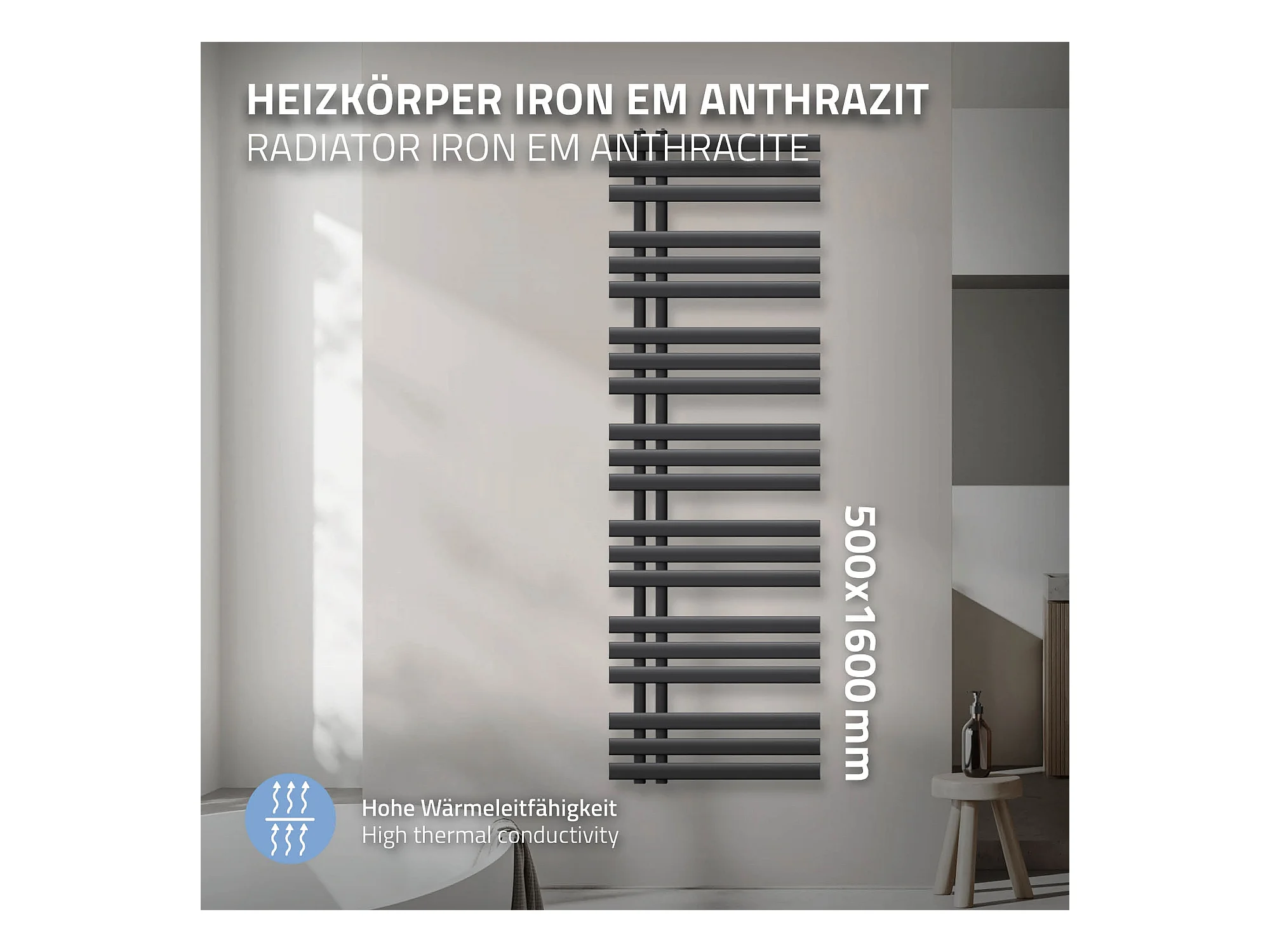 Radiador de baño EM Iron 500x1600 mm Antracita Conexión central en la parte inferior
