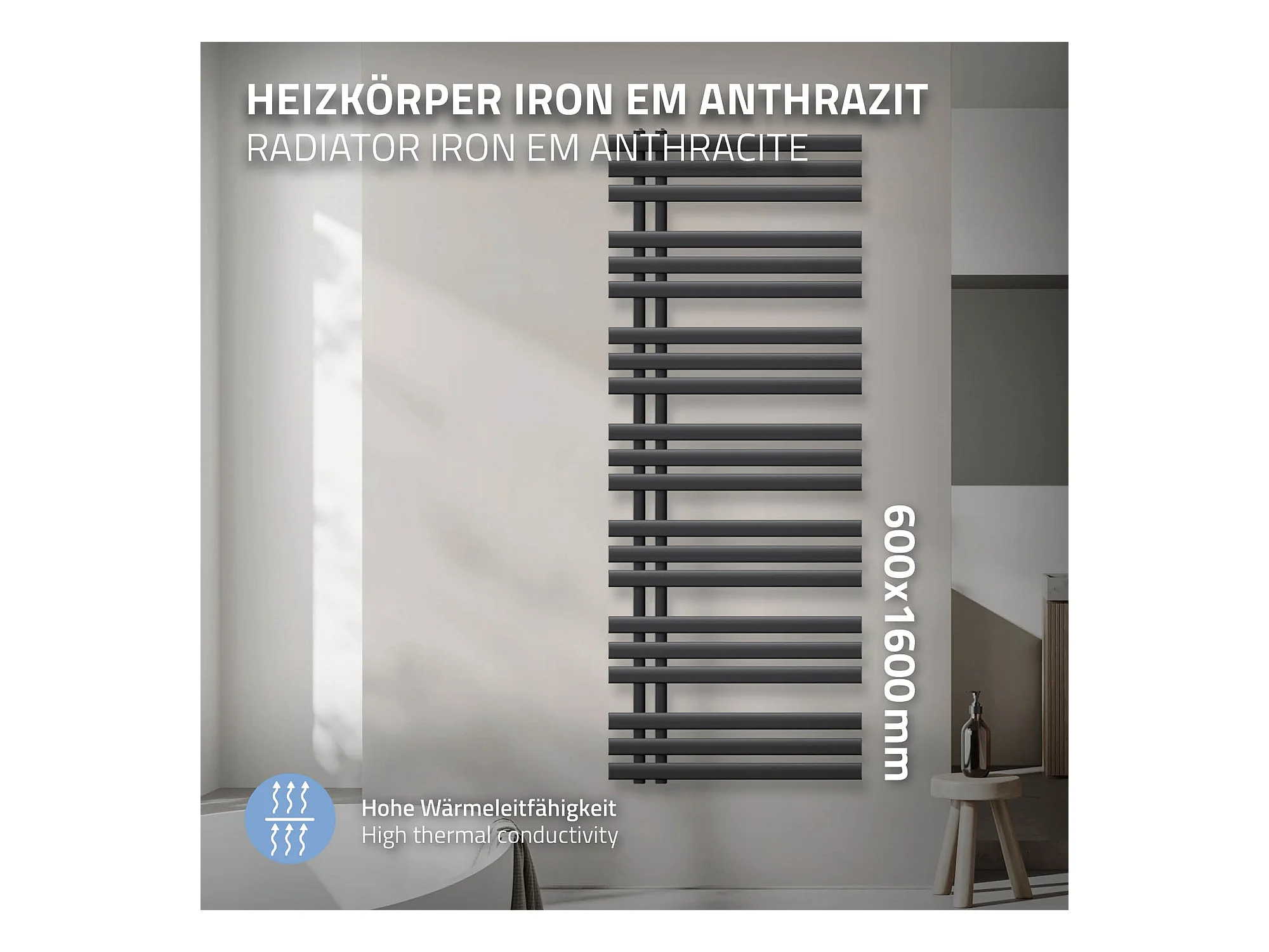 Radiador de baño EM Iron 600x1600 mm Antracita Conexión central en la parte inferior