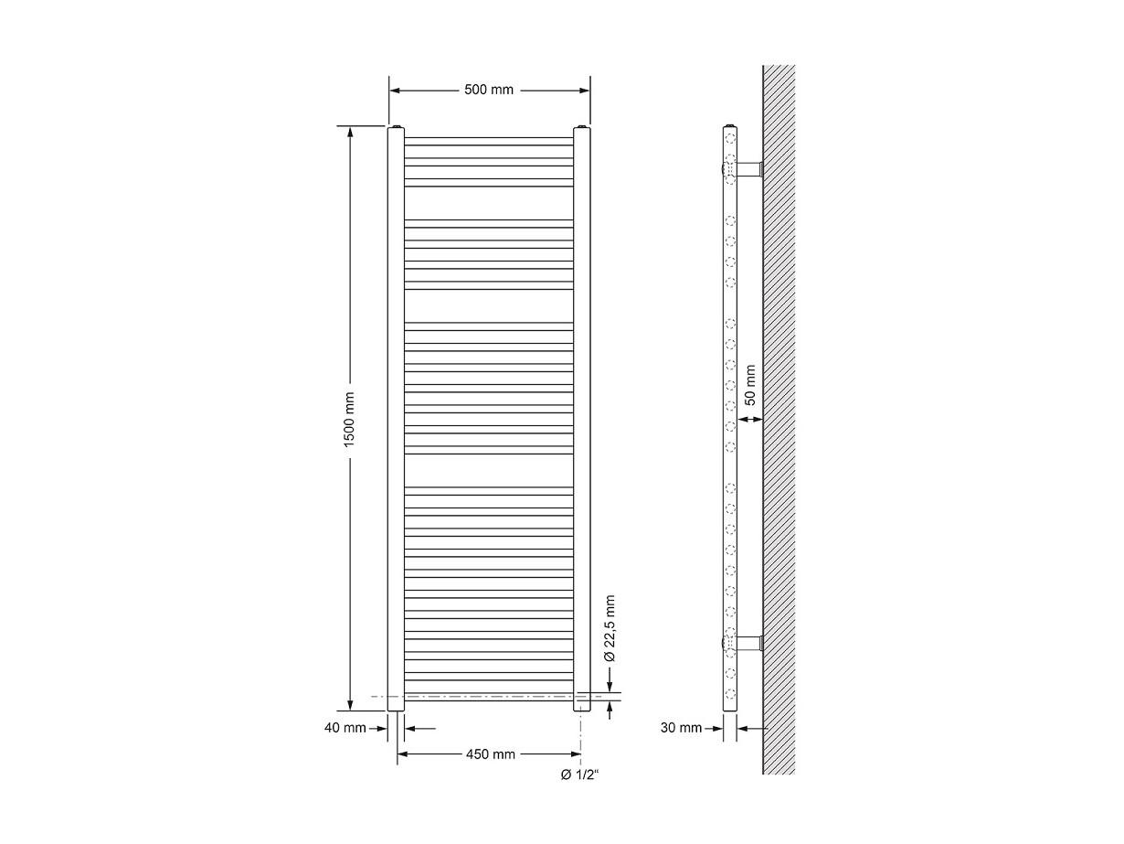 Radiador toallero eléctrico 500x1500 mm barra angular cromada 900W