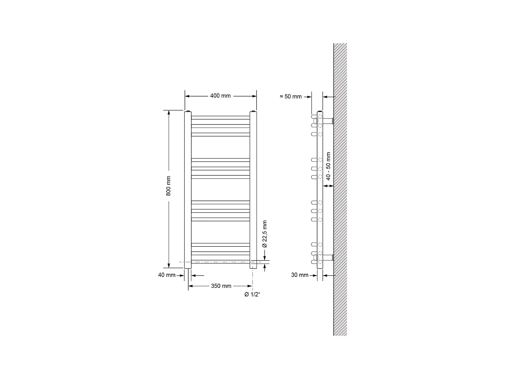 Radiador Eléctrico con Resistencia 300W, 400 x 800 mm, Cromado, Conexión Lateral