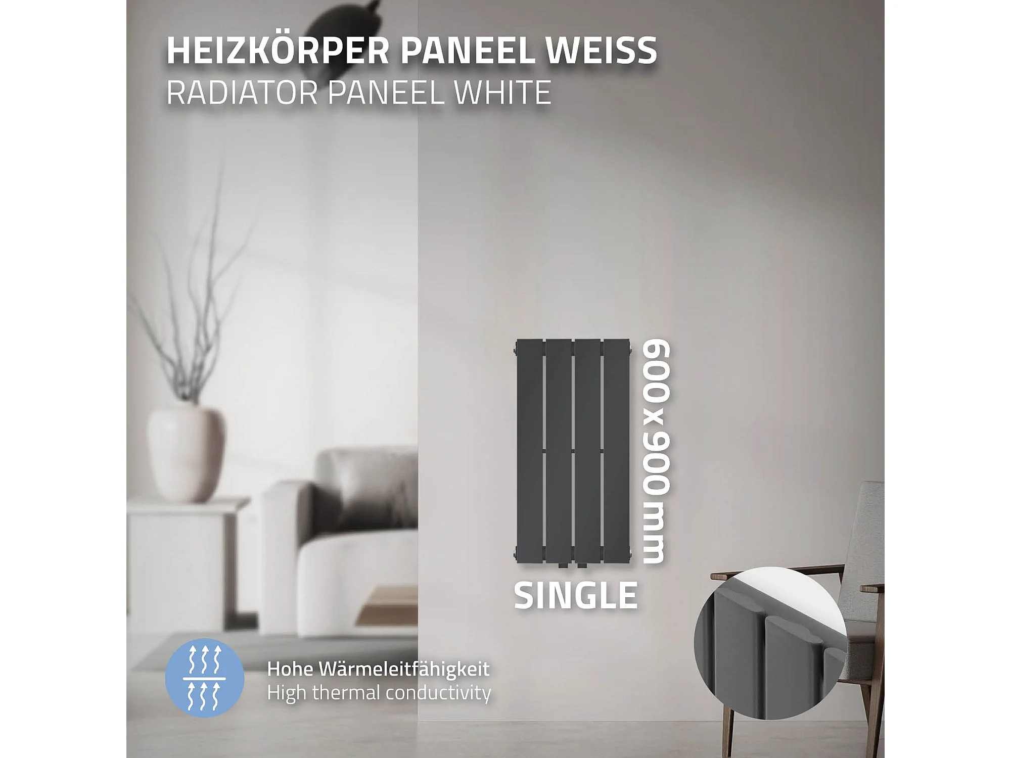 Radiador monocapa de baño antracita 300 x 600 mm con conexión central universal
