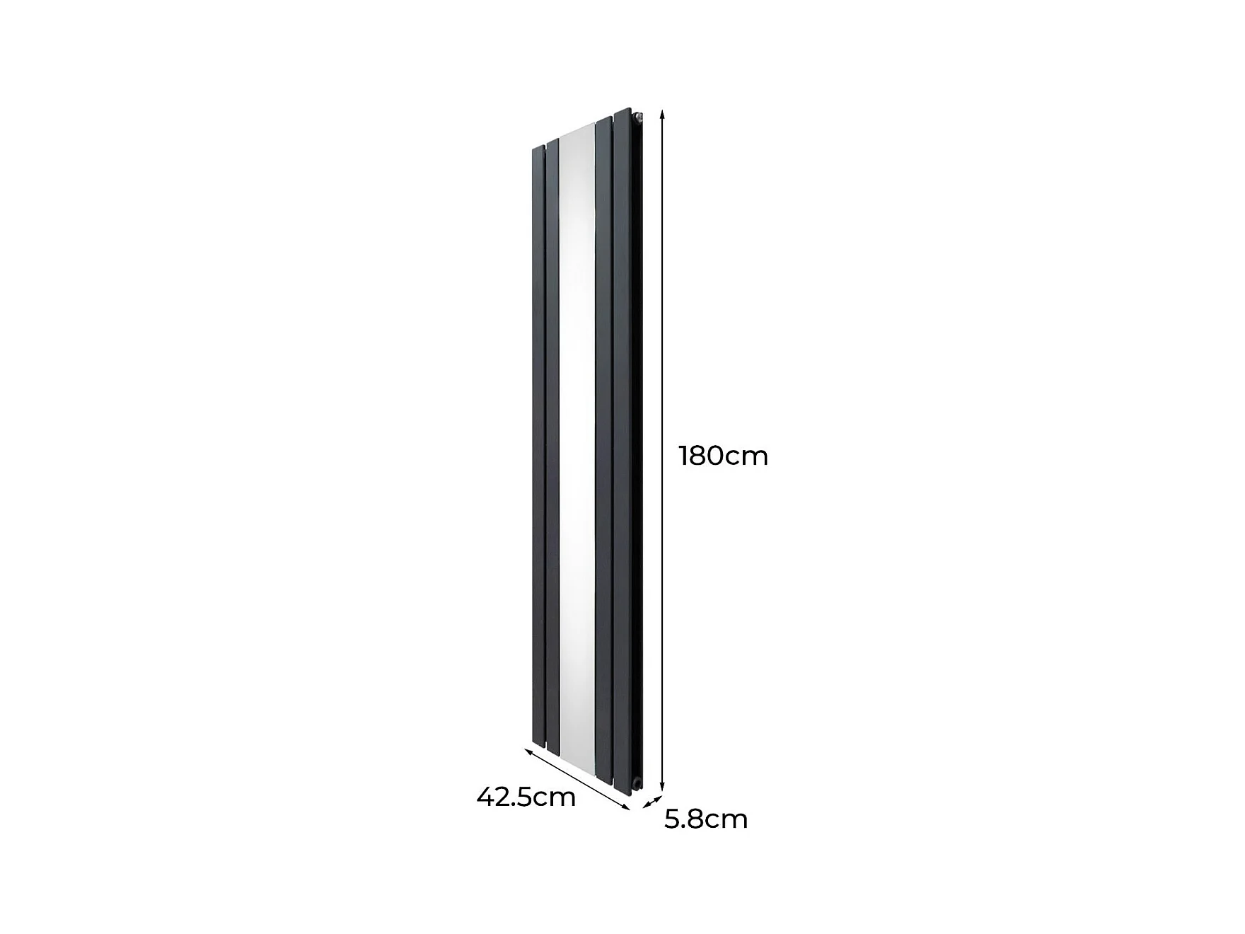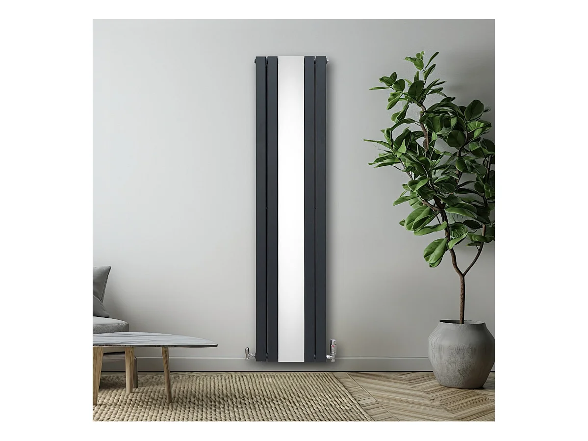 Radiador Plano con Espejo y Válvulas Cromadas TVR - 1800 mm x 425 mm - Gris Antracita